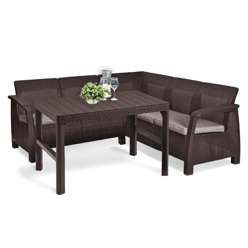 Set colțar de grădină Curver Corfu cu masă Lyon, maro, cu perne incluse