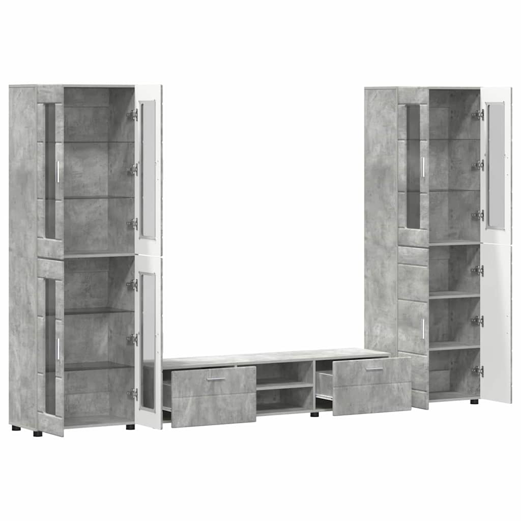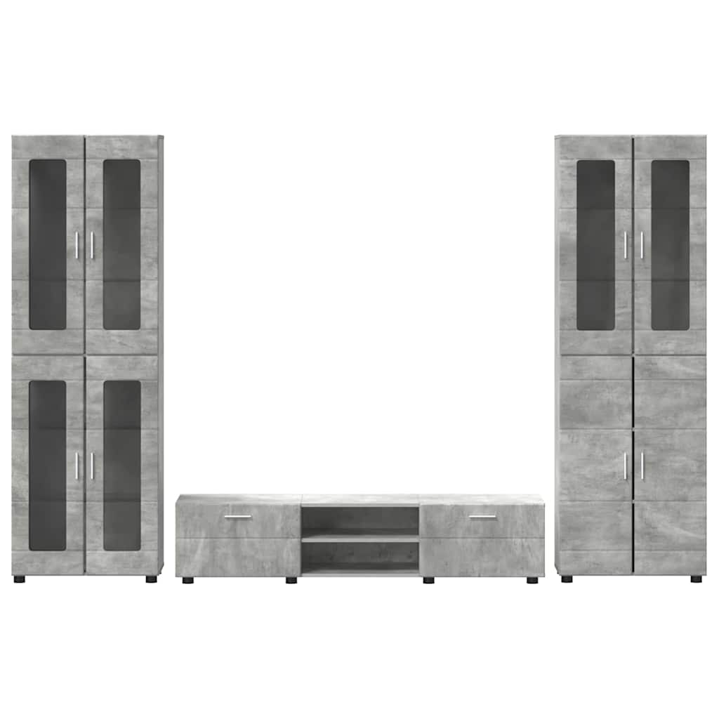 Set comodă TV cu raft FLORIN 3 pcs Gri din beton Lemn compozit GartenMobel Dekor