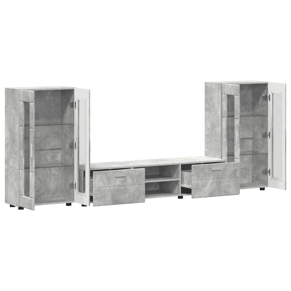 Set comodă TV cu raft FLORIN 3 pcs Gri din beton Lemn compozit GartenMobel Dekor