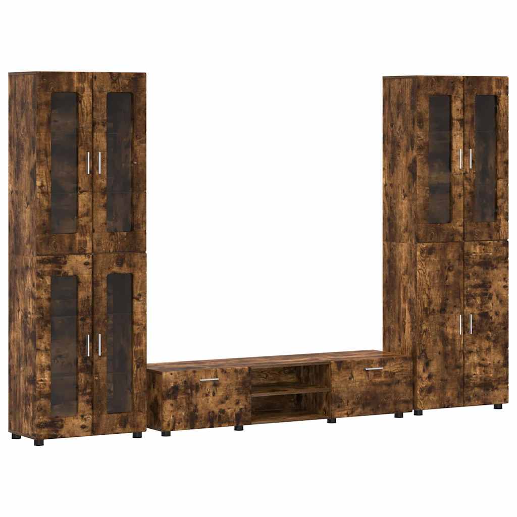 Set comodă TV cu raft FLORIN 3 pcs Stejar fumuriu Lemn compozit GartenMobel Dekor