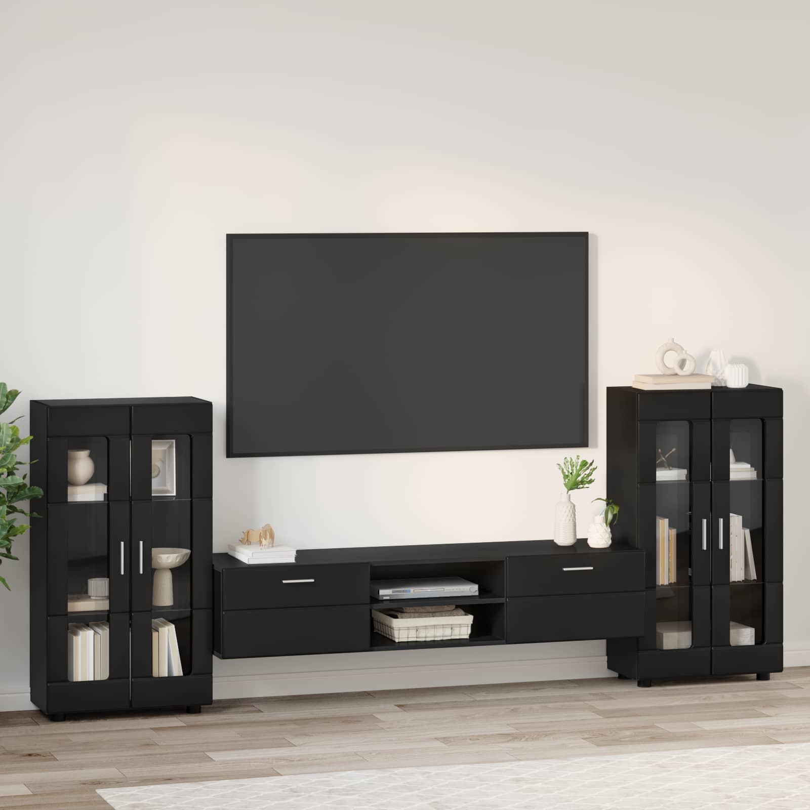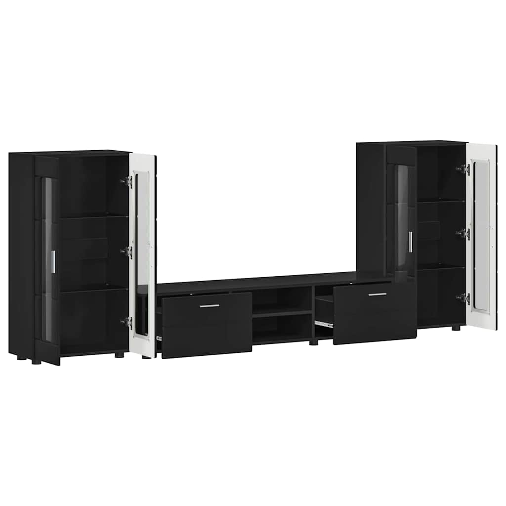 Set comodă TV cu sertar cu ușă FLORIN 3 pcs Negru Lemn compozit GartenMobel Dekor