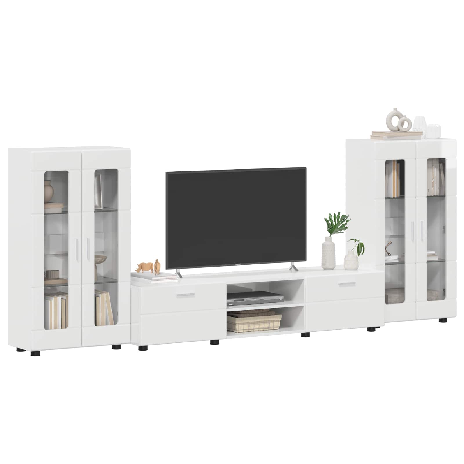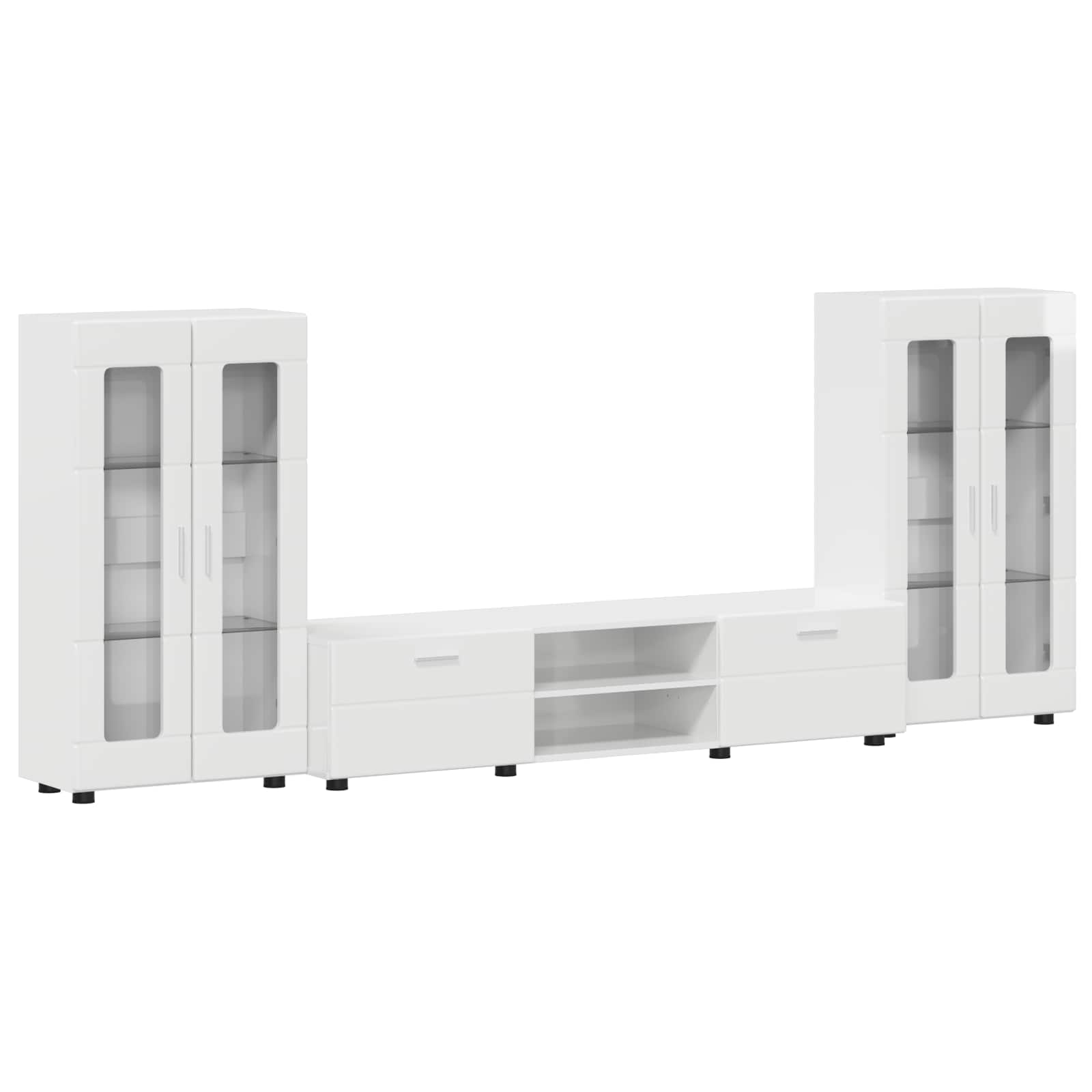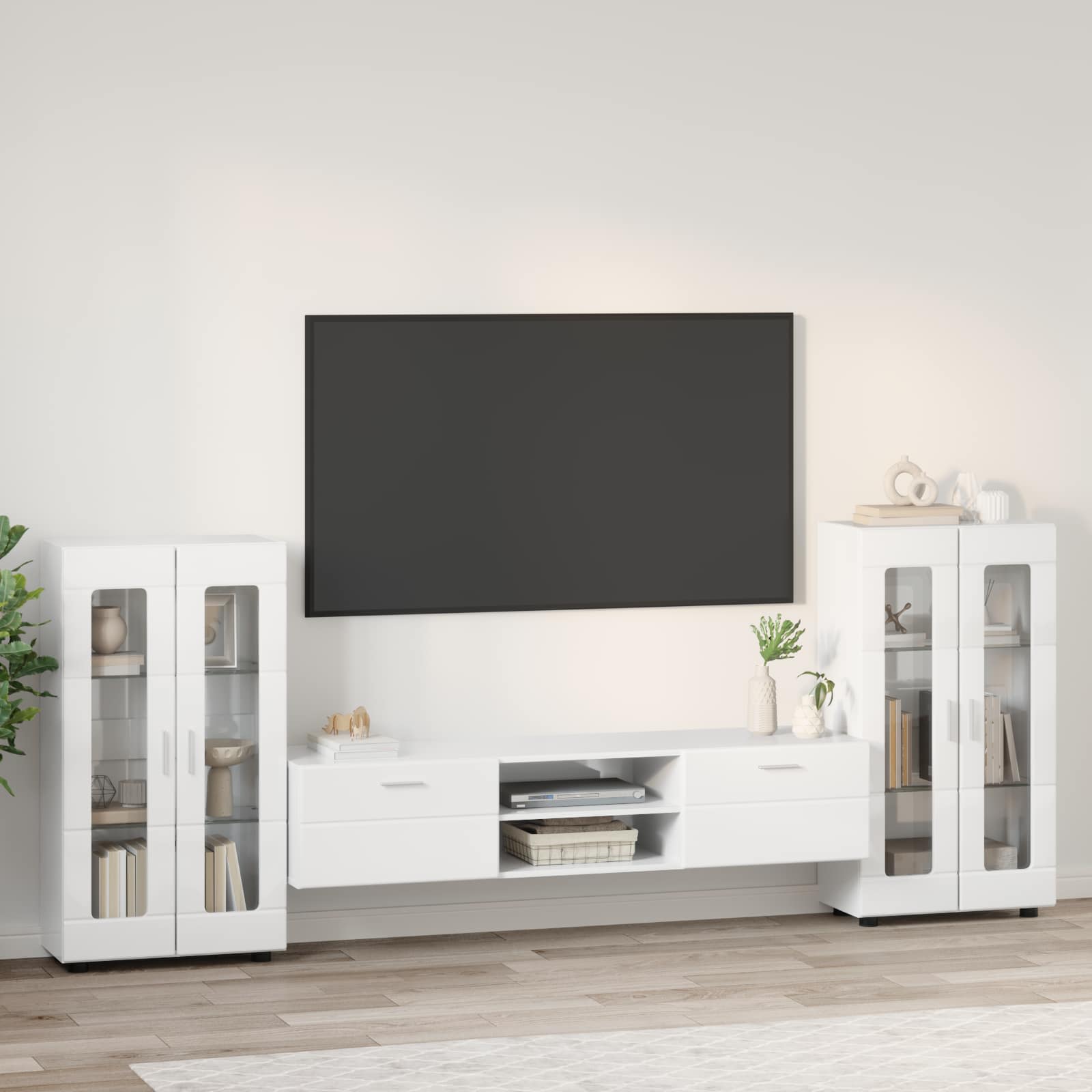 Set comodă TV cu sertar FLORIN 3 pcs Alb lucios Lemn compozit GartenMobel Dekor