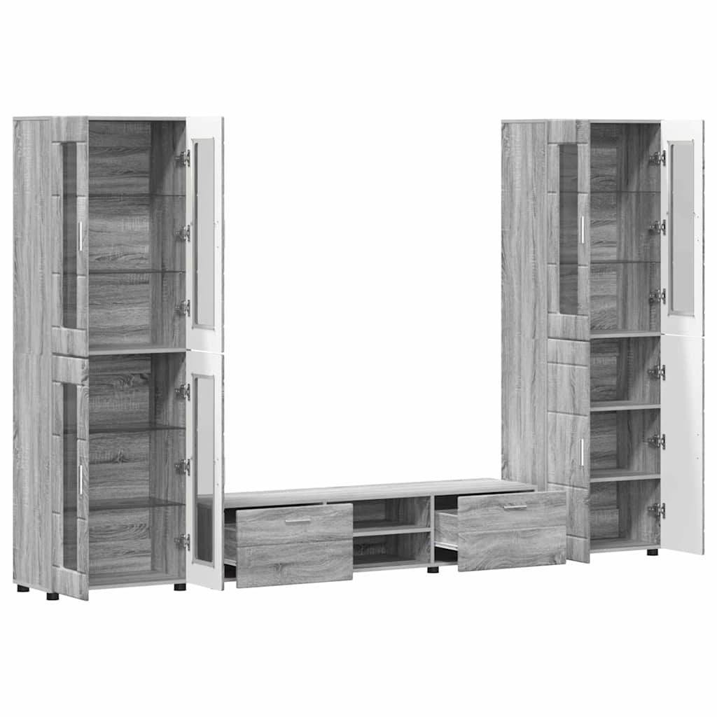 Set comodă TV cu sertar FLORIN 3 pcs Gri Sonoma Lemn compozit GartenMobel Dekor