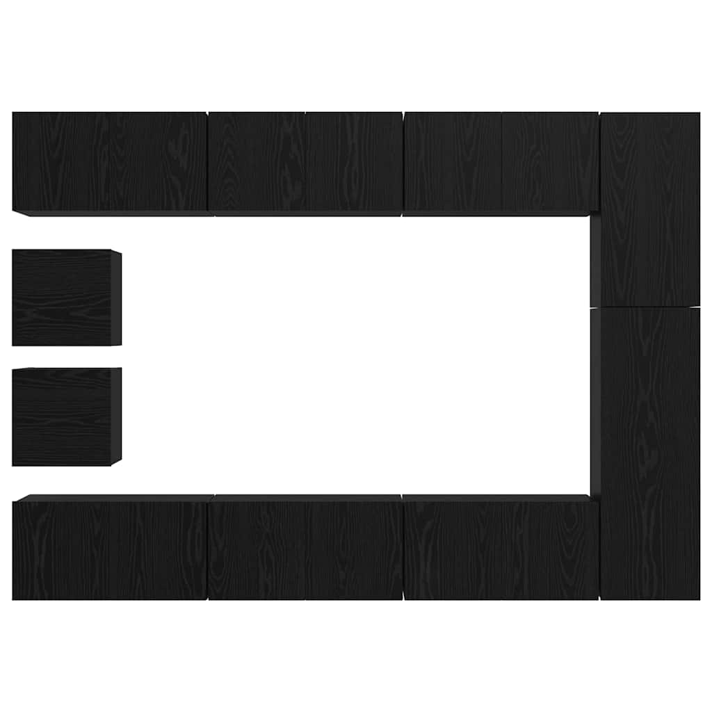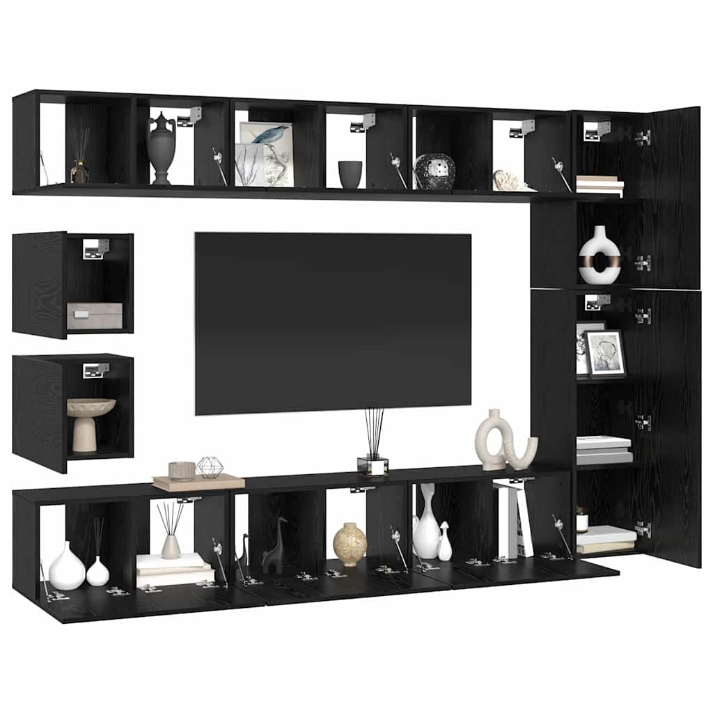 Set comodă TV Pe perete 10 pcs Stejar Negru Lemn compozit GartenMobel Dekor