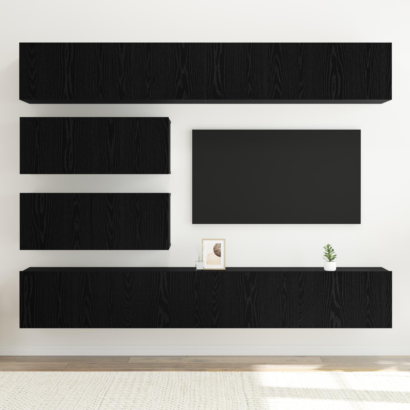 Set comodă TV Pe perete 4 pcs Stejar Negru Lemn prelucrat GartenMobel Dekor