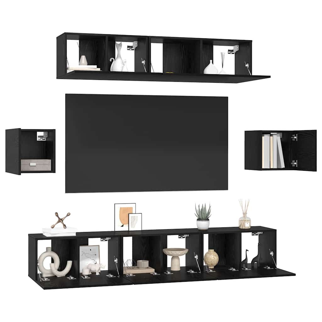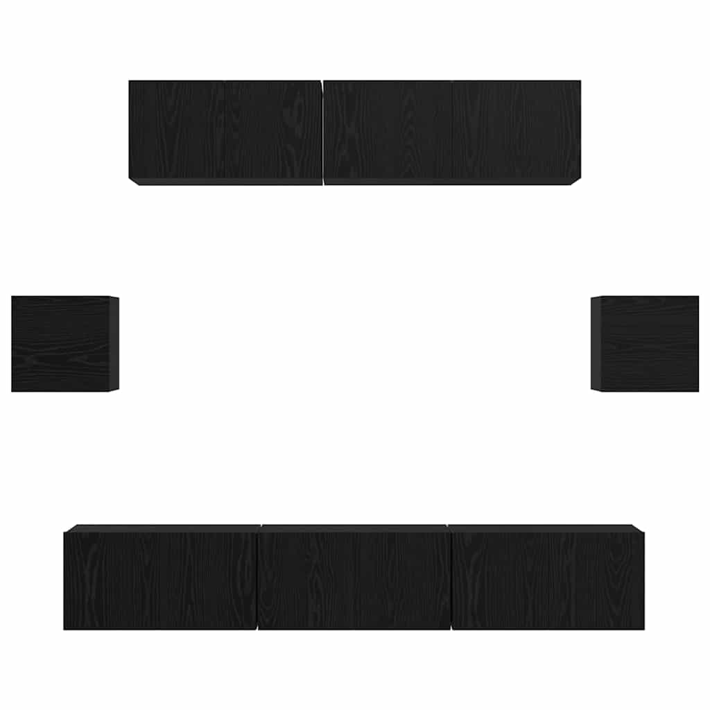 Set comodă TV Pe perete 7 pcs Stejar Negru Lemn compozit GartenMobel Dekor