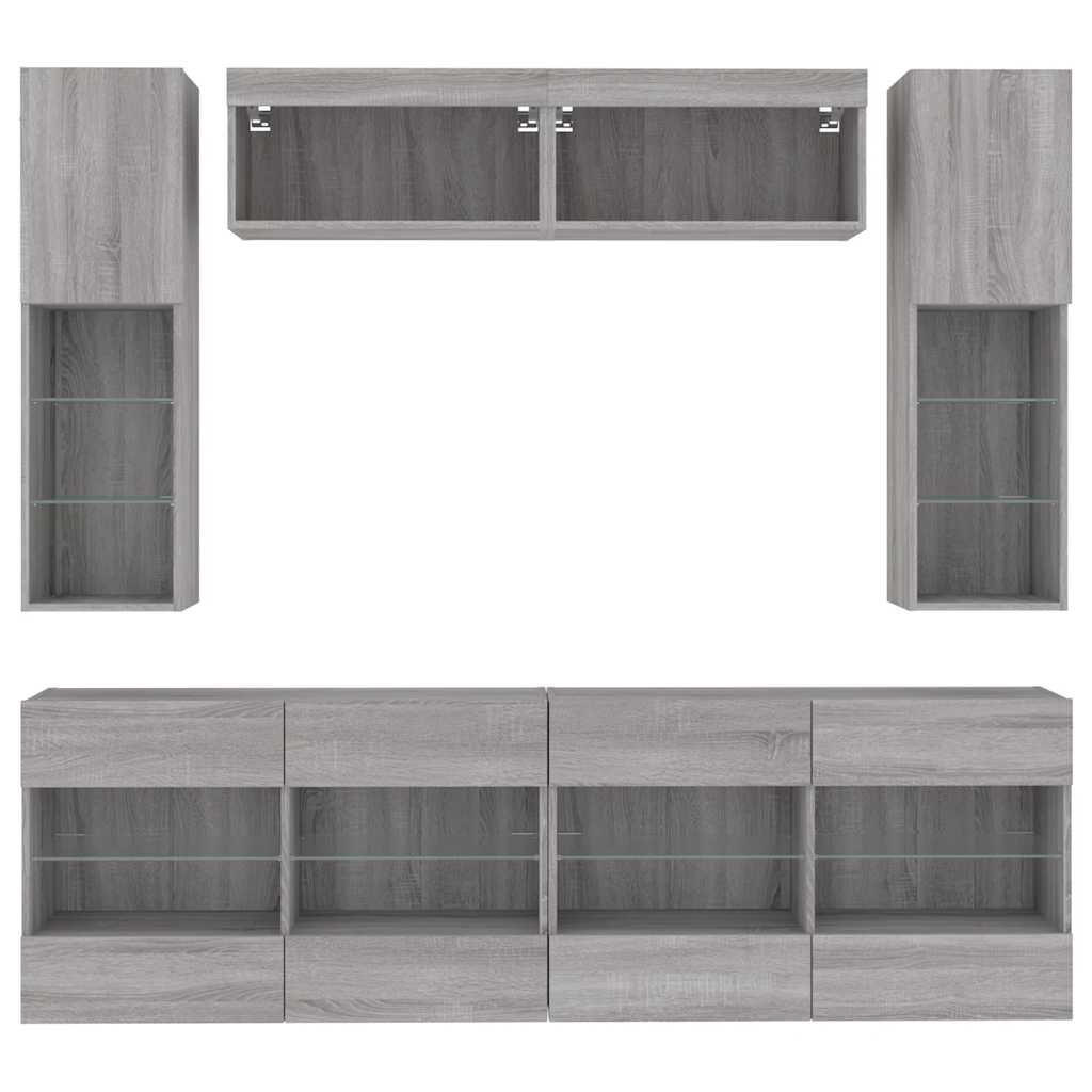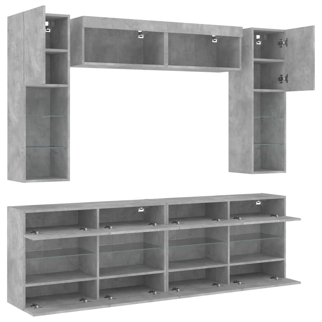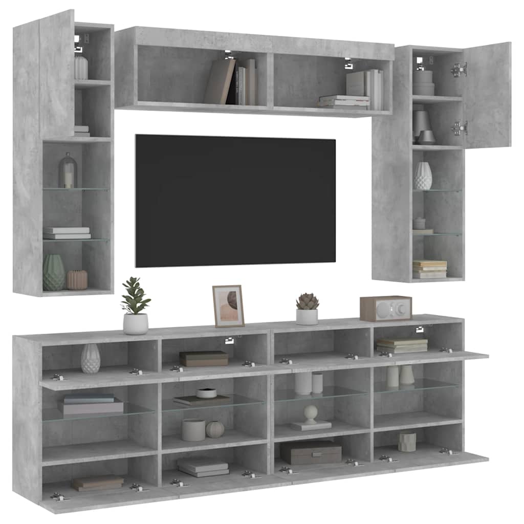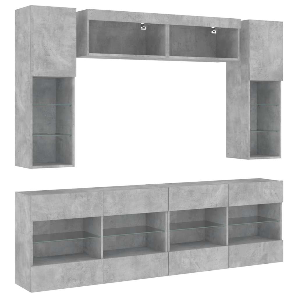Set comode TV de perete cu lumini LED, 6 piese, gri beton GartenMobel Dekor