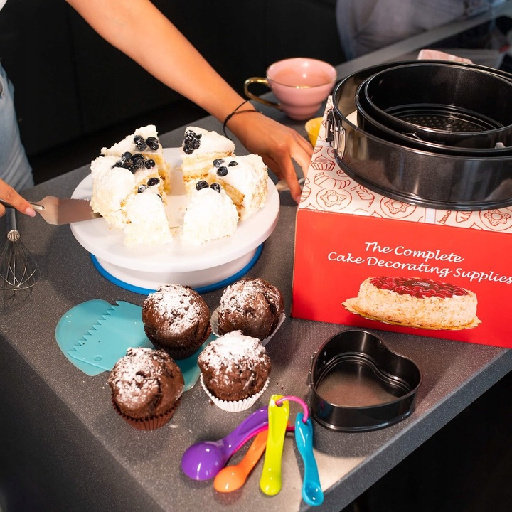 Set complet patiserie 345 piese cu platou rotativ si tavi de copt