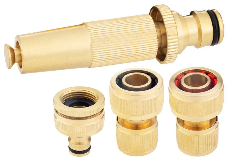 Acest set irigare gradina este potrivit pentru gospodarii, curti, gradini de flori sau zone verzi unde aveti nevoie de un sistem simplu si fiabil. Constructia metalica de tip alama, sugerata de aspectul produsului, ofera rezistenta buna la utilizare frecventa si o conectare sigura.