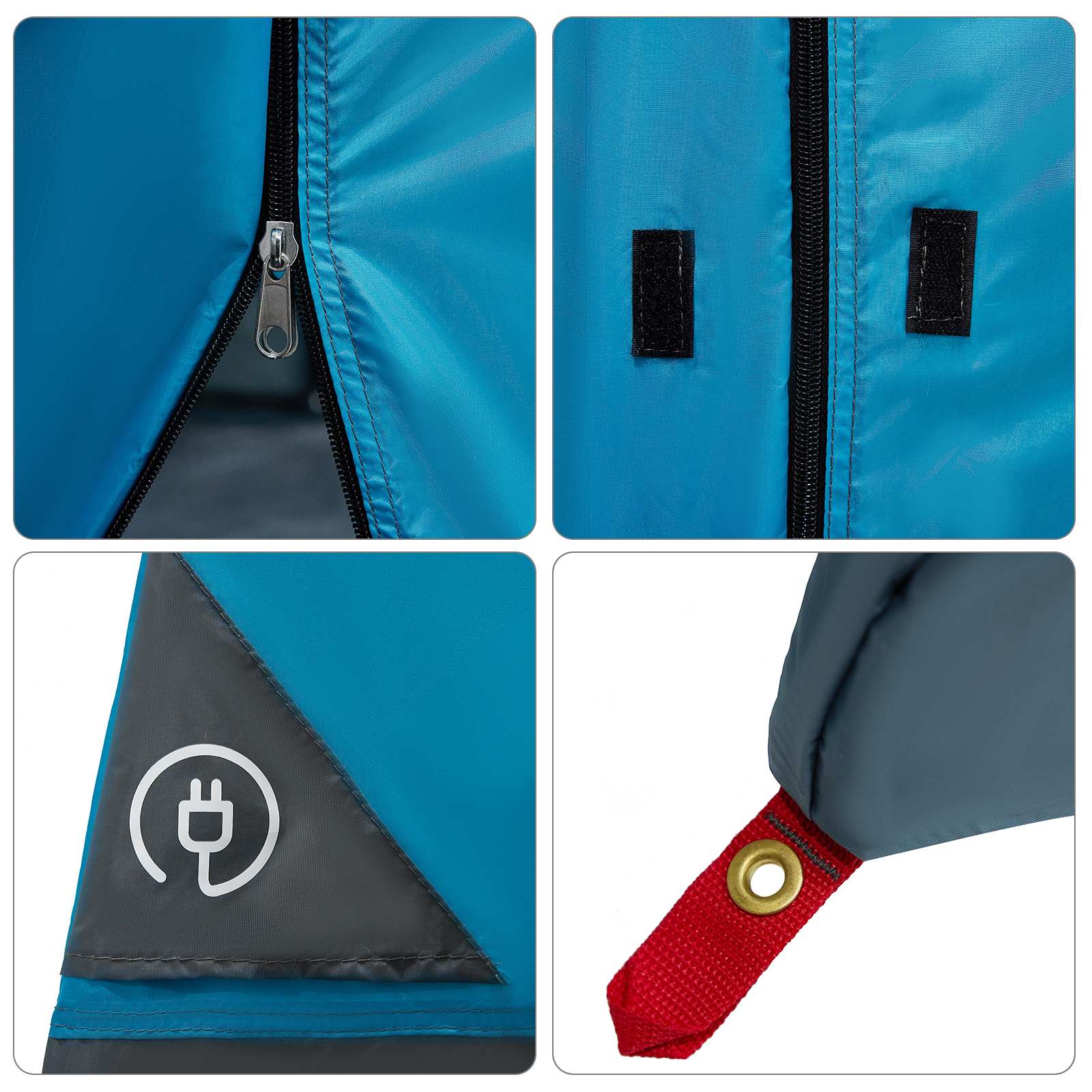 - Componente incluse: Echipat cu un fermoar practic, cortul oferă intimitate și siguranță. Designul pliabil permite o pliere ușoară, fiind simplu de transportat și depozitat când nu e folosit, adaptându-se bine la diverse situații în aer liber.