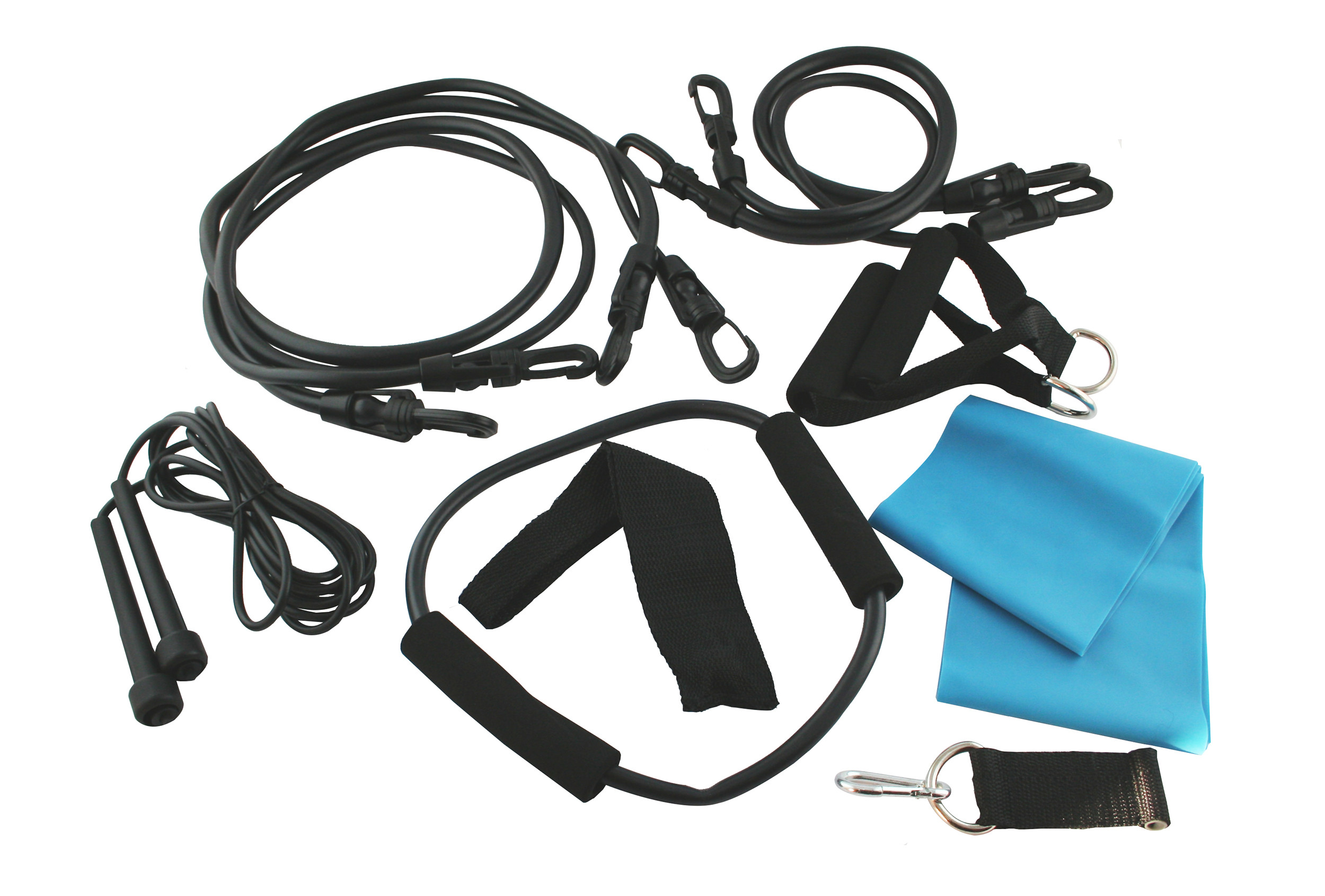 Set corzi de rezistenta HMS TX02 acesta este un kit de exercitii. Produsul foloseste greutatea corpului utilizatorului pentru a-si imbunatati fitnessul si forta. Calitatea ridicata, designul bine gandit si durabilitatea garanteaza o pregatire reusita in toate conditiile. Kitul include 4 corzi de rezistenta, o banda rezistenta, un flexor, 2 manere de spuma, un suport pentru glezna, un suport de usa si o coarda pentru sarituri. Dispozitivul este o modalitate de antrenament moderna. Fiecare pereche de corzi are o rezistenta diferita, ceea ce va permite sa alegeti o intensitate diferita a exercitiilor de rezistenta. Fiecare dintre ele are posibilitatea de a atasa un maner la ele care va permite sa efectuati un antrenament complet de forta pentru toate grupele musculare.