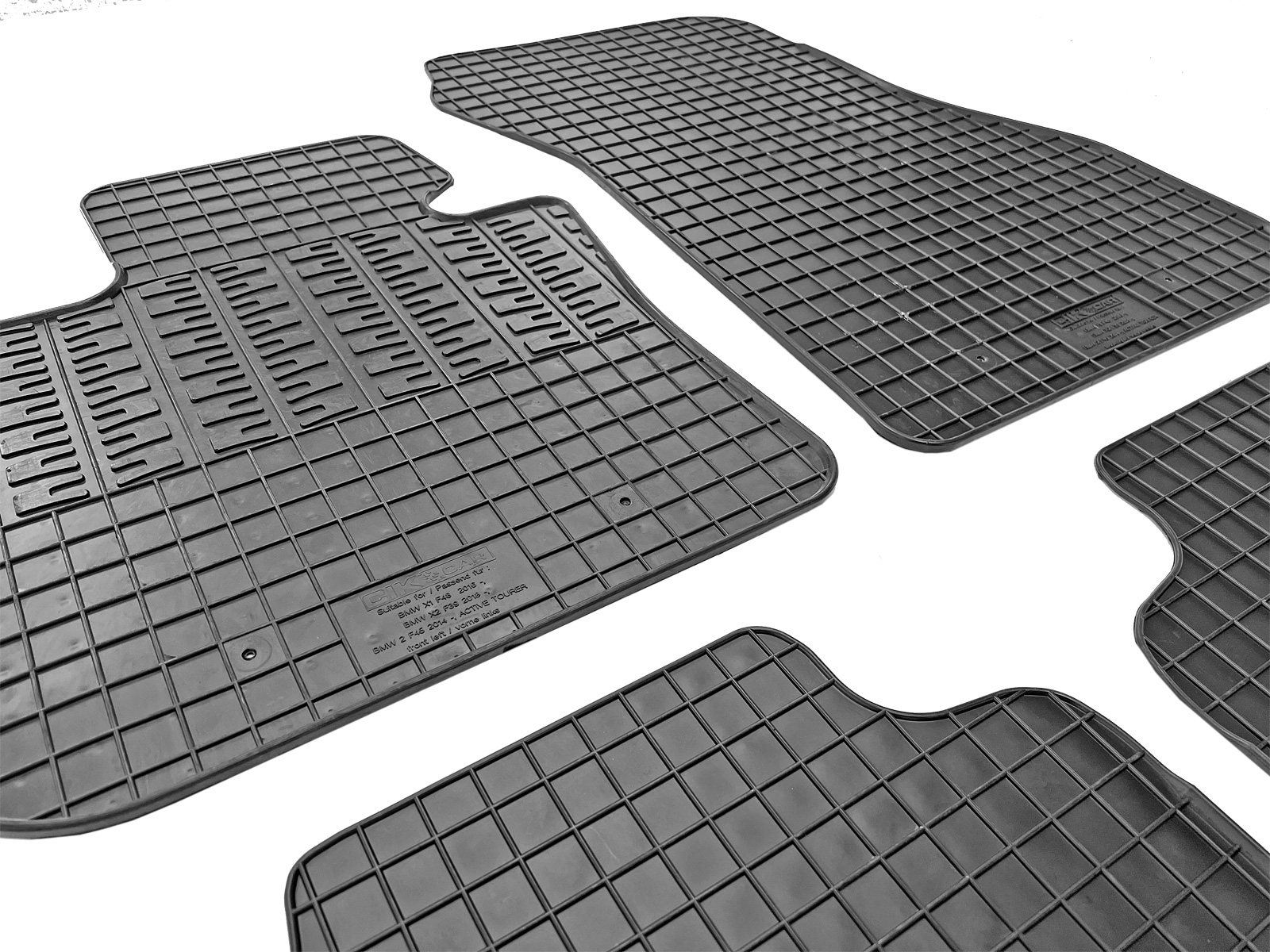 Set covorase auto din cauciuc BMW X1 (F48) 2016-, X1 (U11) 2022-, X2 (F39) 2018-, X2 (U10) 2024-, seria 2 (F45) / (U06) Active Tourer 2014- / 2022-; Mini Countryman (U25) 2024-, Negre AutoDrive ProParts