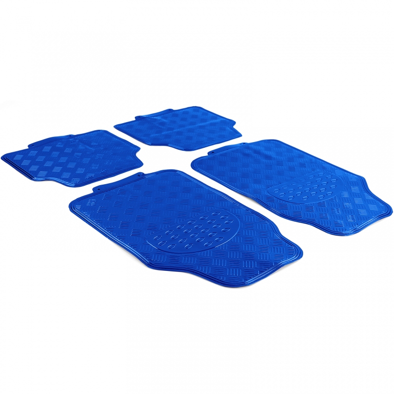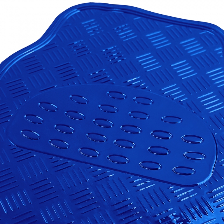 Set covorase din cauciuc pentru mașină 4 bucăți Aspect tablă cu carouri din aluminiu Universal Cromat Albastru Performance AutoTuning