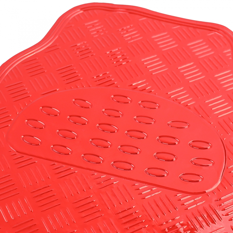 Set de covorașe auto 4 piese – Aspect placă de aluminiu | Roșu cromat | Universal Cu acest set de covorașe auto de 4 piese, cu un aspect striking de placă de aluminiu, oferiți interiorului vehiculului dumneavoastră un aspect sportiv și modern. Suprafața roșie cromată este un adevărat atrăgător de priviri și protejează fiabil podeaua vehiculului de murdărie, umiditate și uzură. Datorită țepilor de pe spate, covorașele sunt antiderapante în zona picioarelor și oferă mai multă aderență în timpul condusului. Ideale ca covorașe universale pentru multe vehicule – instalare rapidă și gata de utilizare imediat. Set de covorașe auto 4 piese (față + spate) Material: Plastic/rubber foarte durabil Design: Aspect placă de aluminiu Culoare: Roșu cromat Cu țepi pe spate pentru aderență antiderapantă Protejează fiabil interiorul de murdărie, umiditate și abraziune Aspect sportiv, premium Universal potrivit pentru multe vehicule (vă rugăm să verificați dimensiunile) Dimensiuni: Covorașe față: L: 70 cm x l: 45 cm Covorașe spate: L: 41 cm x l: 45 cm Perfect pentru oricine dorește să ofere interiorului vehiculului său un aspect sportiv, protejând în același timp eficient zona picioarelor.Informații de siguranță ale produsuluiProducător: Carparts-Online GmbHBrauckstr. 47, 58454 WittenContact: info@carparts-online.deInstrucțiuni de siguranță:Instrucțiune de siguranță pentru ambalaj:Există un risc de accidentare din cauza marginilor ascuțite de hârtie, carton sau folie, precum și a clipsurilor metalice ascuțite.Materialul de ambalare nu este un joc. Risc de sufocare pentru copii sau animale.Instrucțiune de siguranță pentru produs:Articolul poate avea margini ascuțite. Risc de accidentareRecomandăm instalarea de către un profesionist în domeniul auto