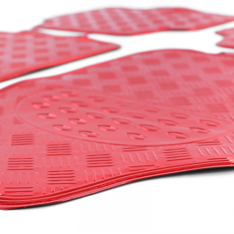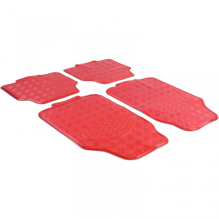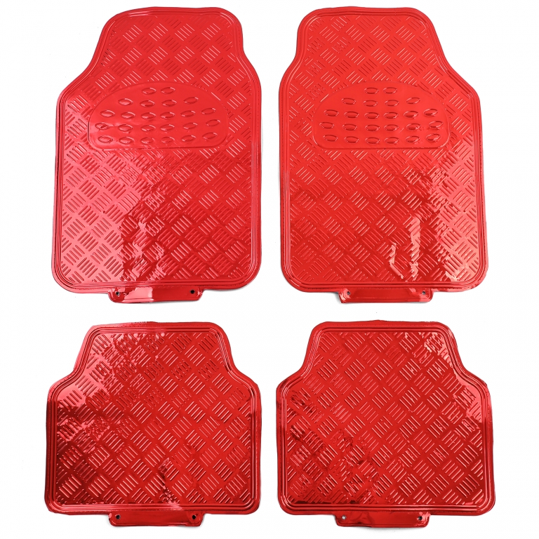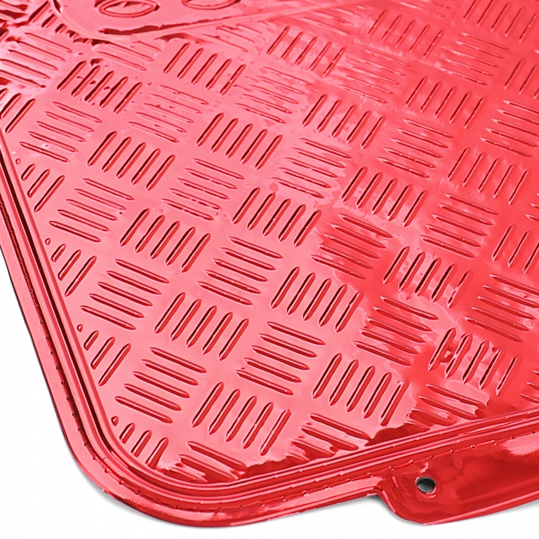 Set covorase din cauciuc pentru mașină 4 piese Aspect placă de aluminiu cu carouri Universal Cromat Roșu Performance AutoTuning