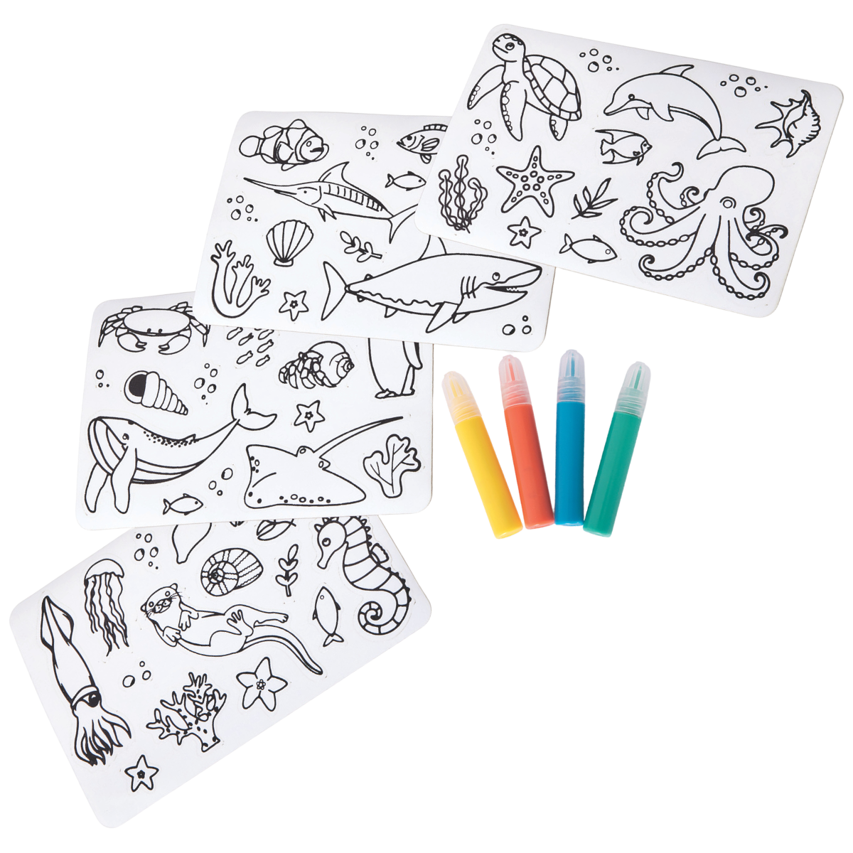Abtibildurile marine de colorat sunt prevazute cu linii pre-desenate, astfel incat colorarea este mai usoara si mai placuta chiar si pentru copiii care abia isi dezvolta indemanarea. Dupa colorare, modelele se lasa la uscat peste noapte si pot fi dezlipite usor pentru a fi lipite, mutate si refolosite.