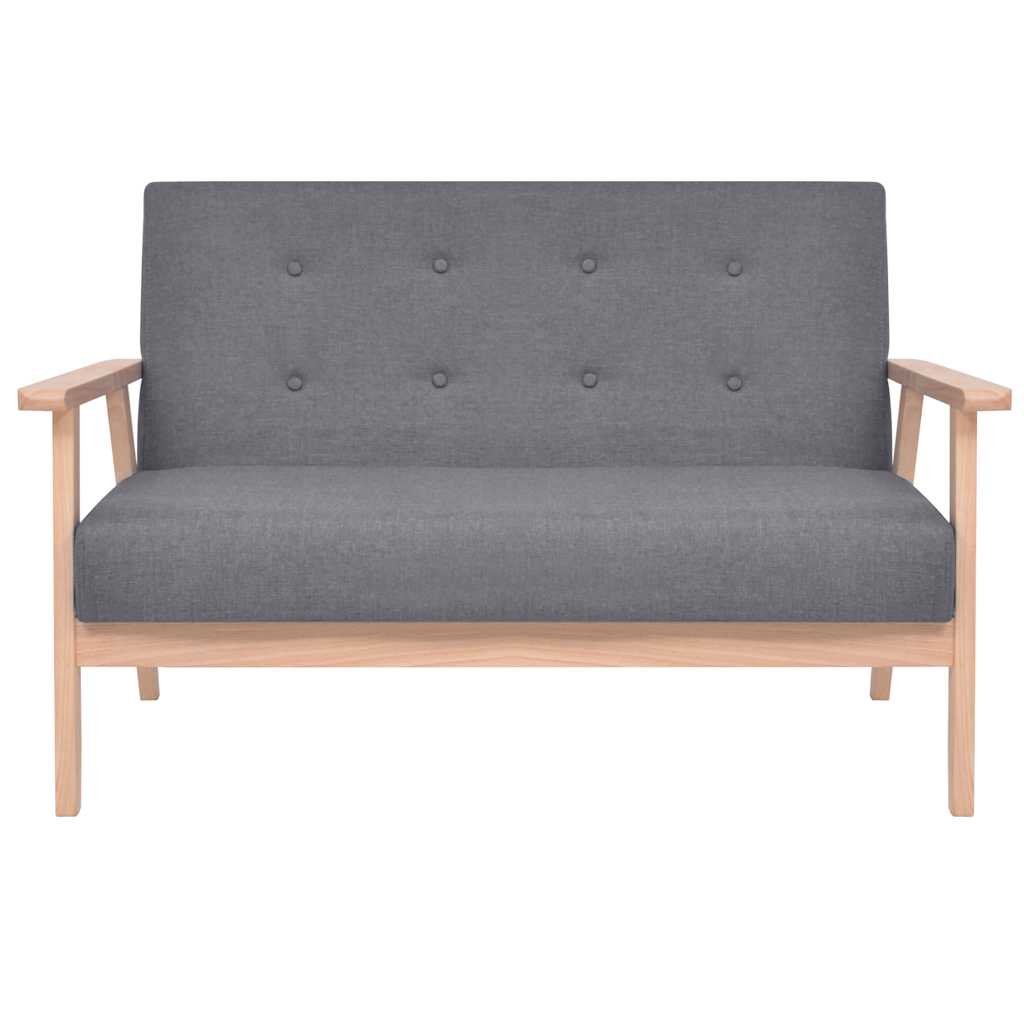 Setul de canapele este tapițat cu țesătură din poliester, moale și căptușită cu spumă, pentru un confort sporit. Având un cadru rezistent din lemn, setul de canapele este stabil și durabil. De asemenea, este ușor de asamblat.