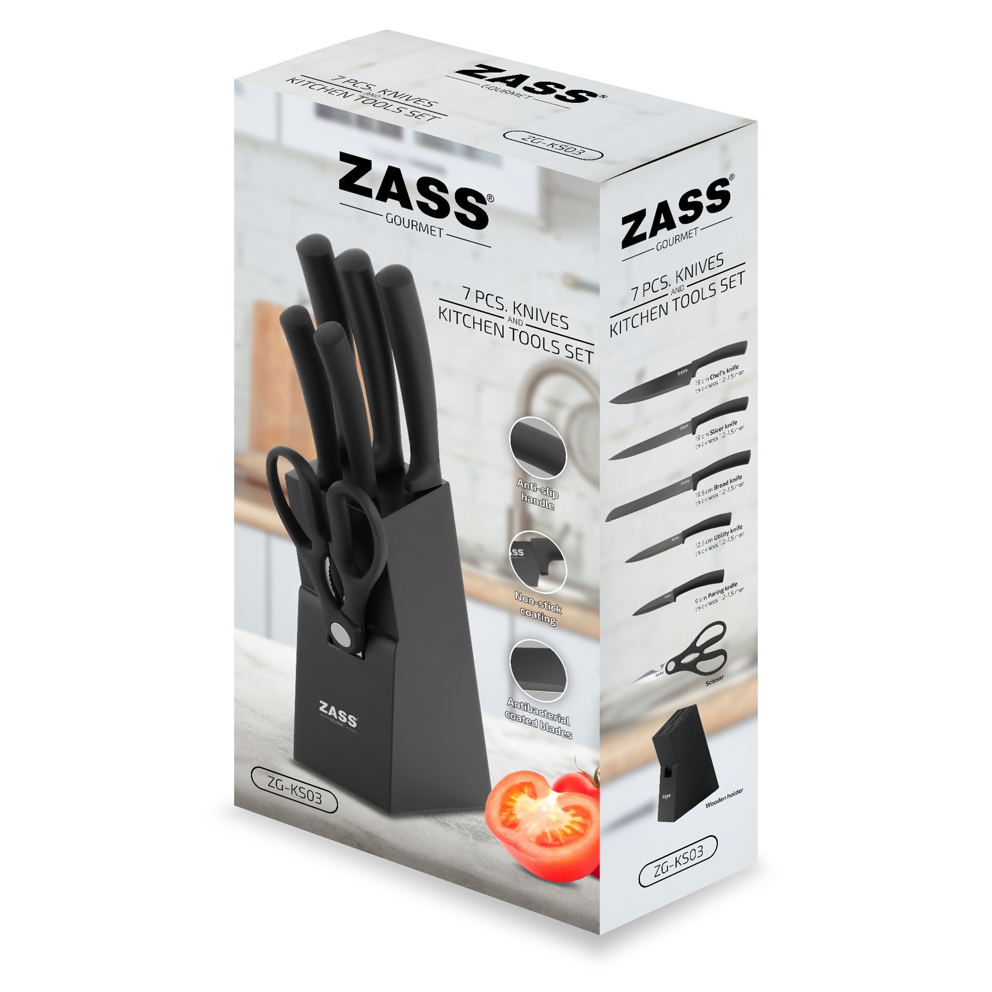 Set cutite de bucatarie Zass Gourmet ZG-KS 07, 8 piese cu suport