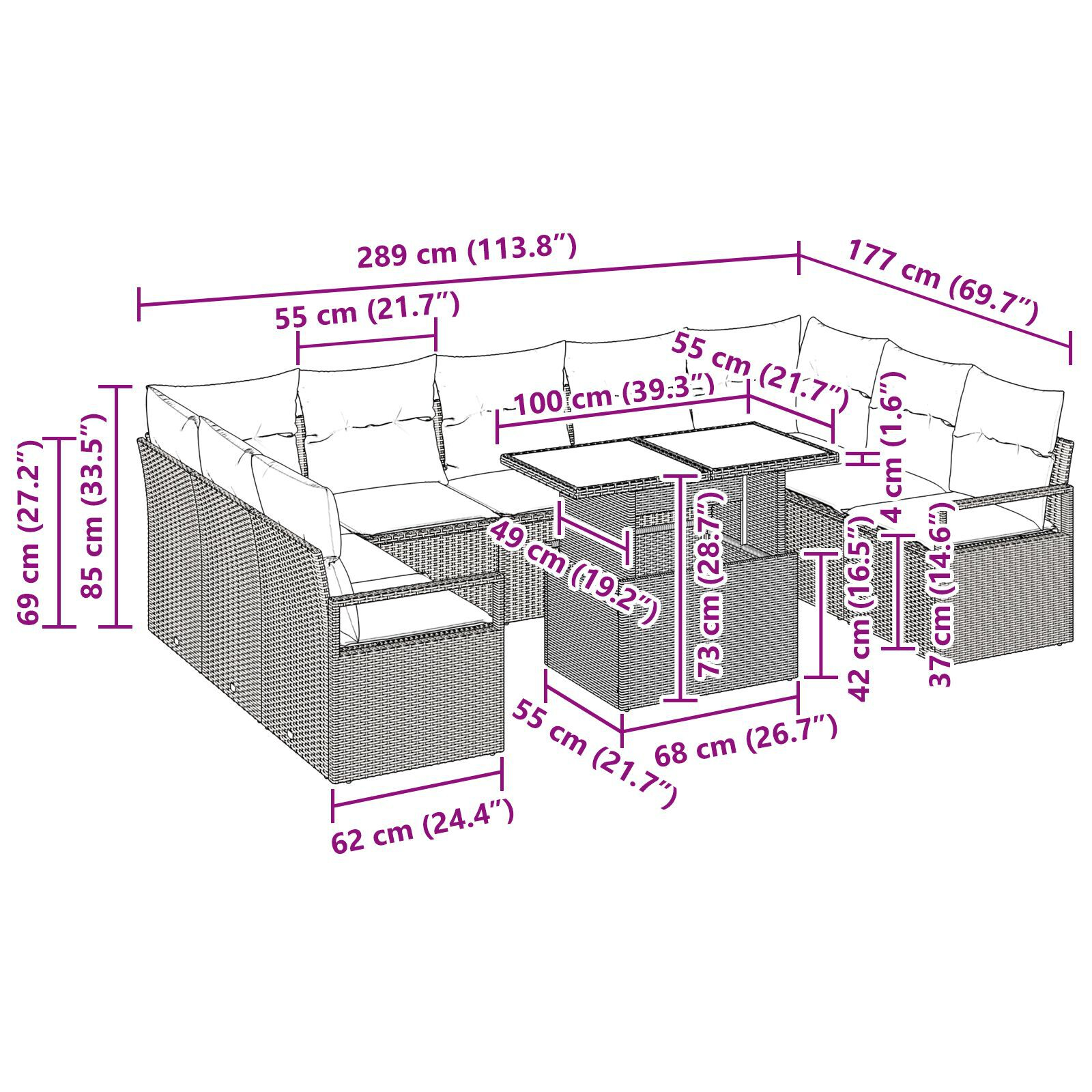 Set de 10 Piese Canapea pentru Grădină cu Perne Gri Deschis Poly Rattan, Canapea de Grădină cu Două Locuri cu Perne Gri Poly Rattan GartenMobel Dekor