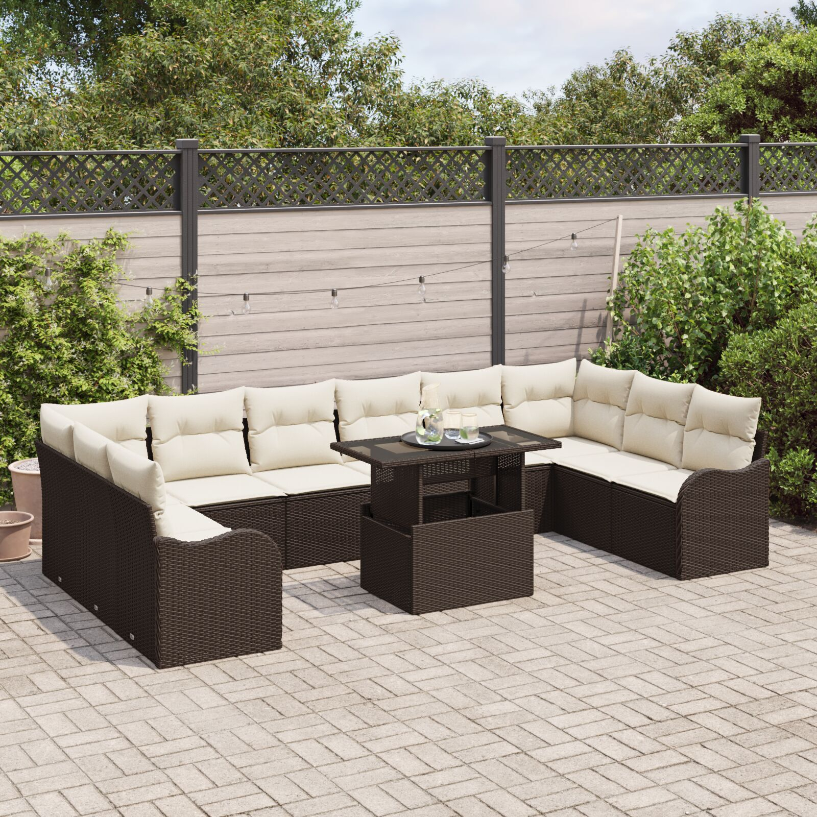 Set de 11 piese grădină cu perne Maro Ratan Poli, Canapea 2 locuri cu spațiu de stocare & perne Maro Ratan Poli GartenMobel Dekor