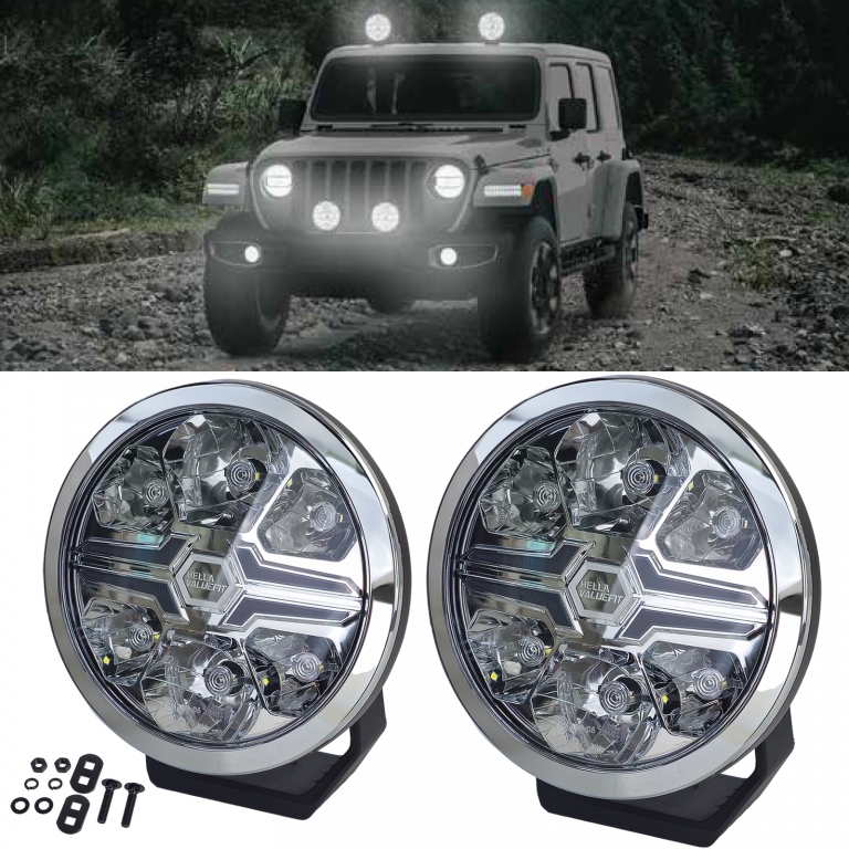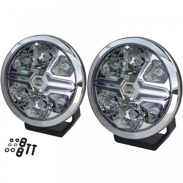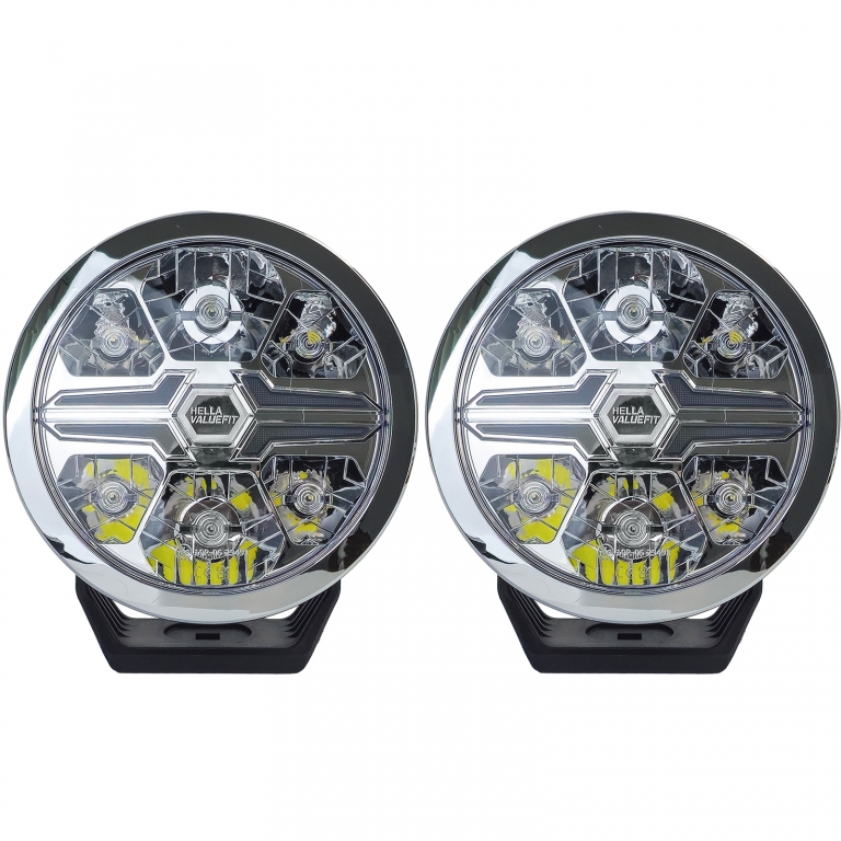Set de 2 piese HELLA VALUEFIT Faruri auxiliare cu LED-uri pentru faza lungă, cu lamă cromată, rotunde de 7˝, legale
