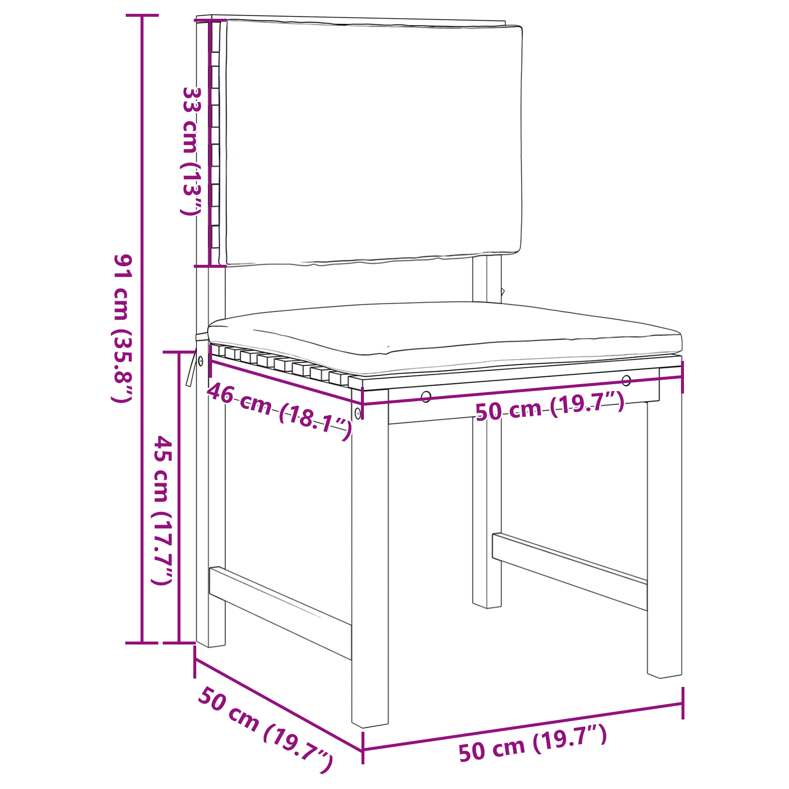 Set de 2 scaune de grădină fără brațe cu perne din lemn masiv de acacia GartenMobel Dekor