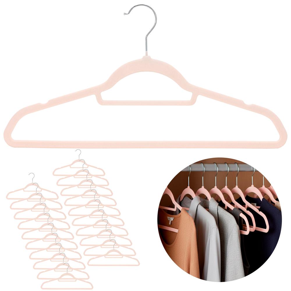 Set de 20 de umerase pentru haine, din velur, cu carlig rotativ, 45x23 cm, roz Household NewTrend