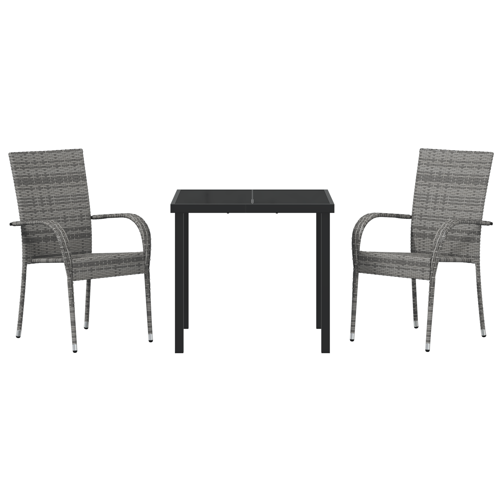 Set de 3 Piese pentru Dining în Grădină Gri Poliratan GartenMobel Dekor