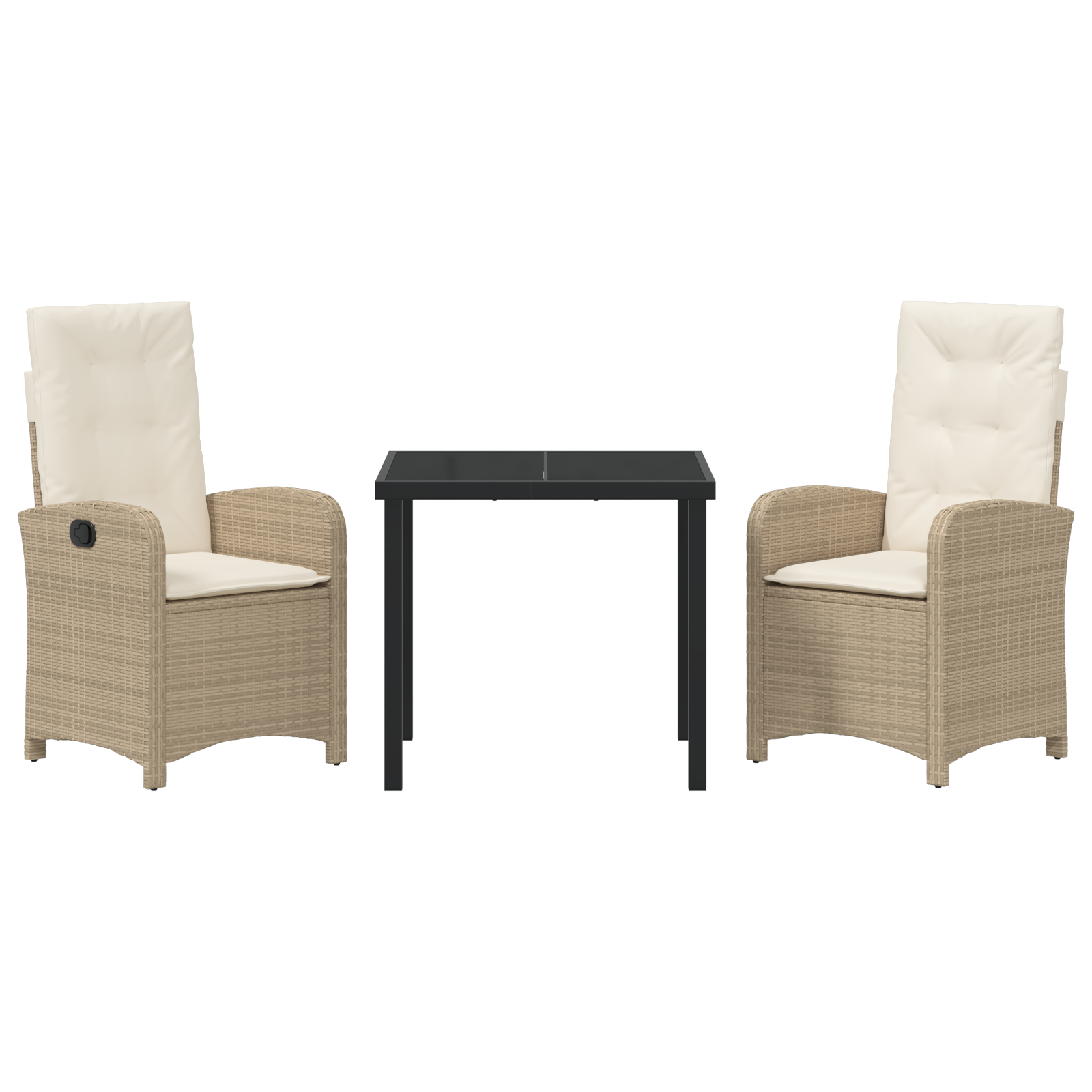 Setul ăsta de scaune reclinabile pentru grădină îmbină stilul modern cu confortul perfect pentru zilele petrecute afară. Făcute din poliratan durabil și un cadru solid din oțel vopsit, aceste scaune aduc eleganță și rezistență. Culorile bej și crem le fac unice pentru a-ți transforma locul de relaxare, ideal pentru întâlniri cu prietenii sau relaxare personală.