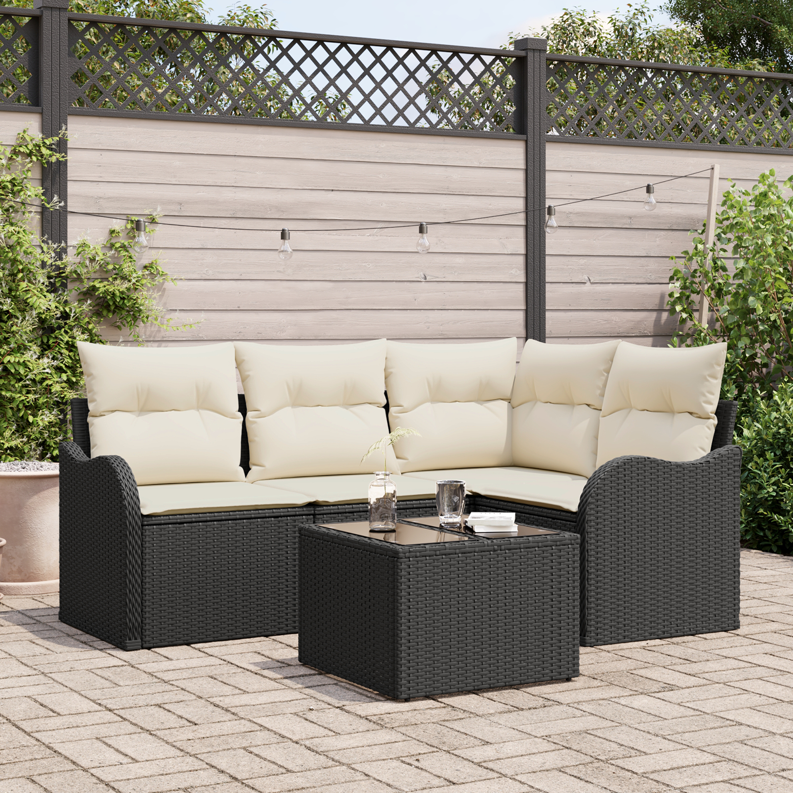- Design Elegat și Stilat: Rattanul negru cu perne crem crează un contrast elegant care îmbunătățește orice decor de patio sau balcon.