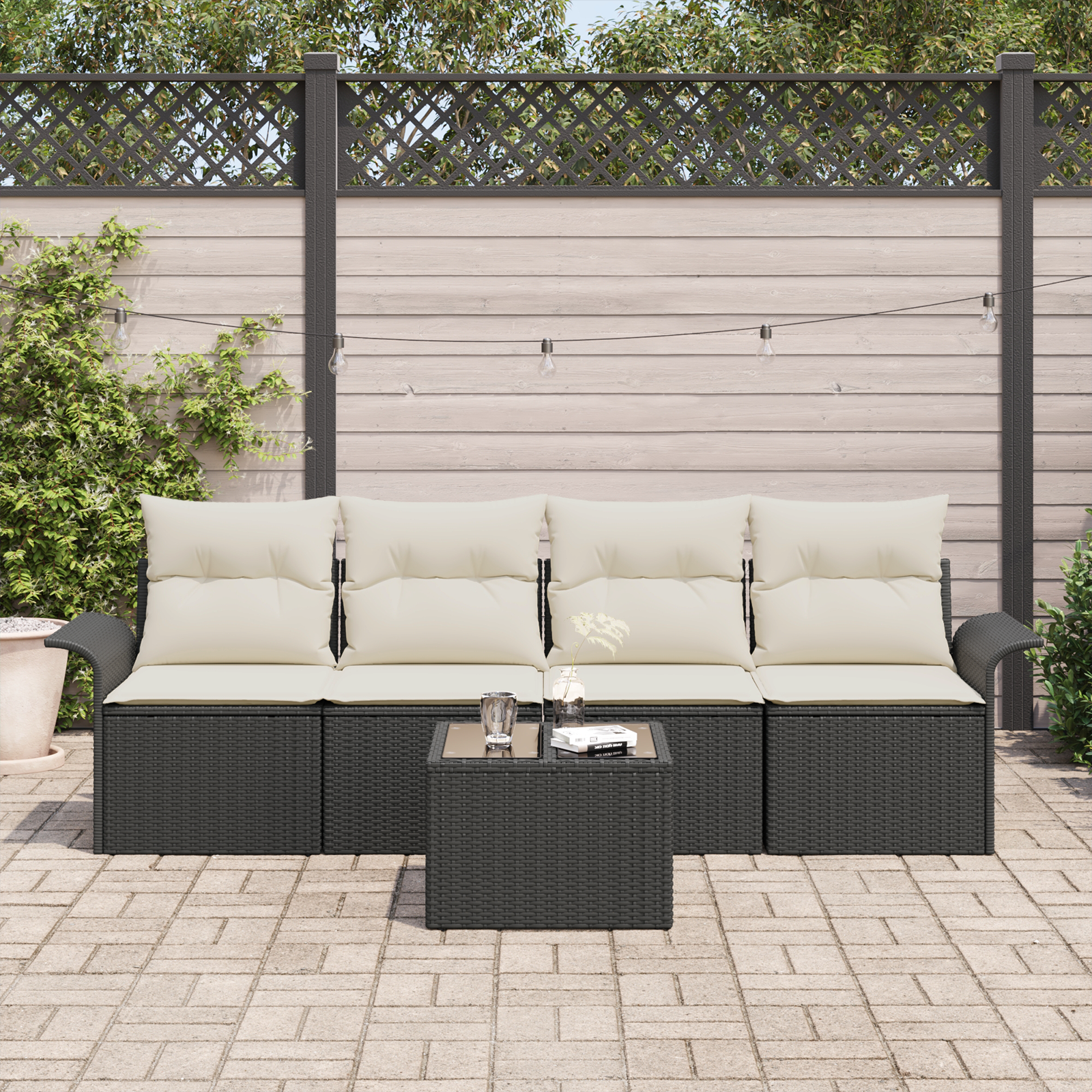 Set de 5 piese de sofa de grădină cu perne Negru Poliratan GartenMobel Dekor