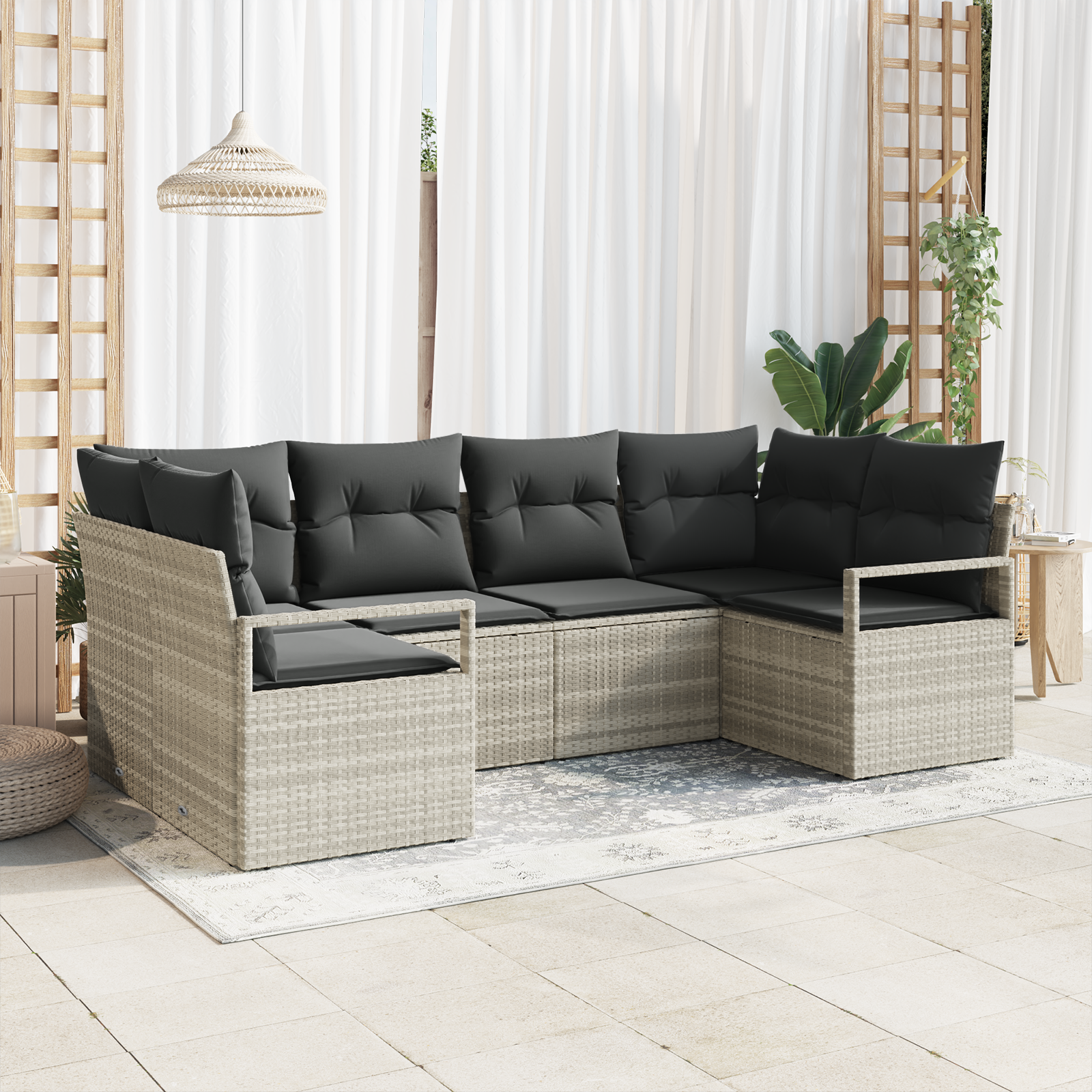 Set de 6 Piese Canapea de Grădină cu Perne Gri deschis Poli Ratan, Canapea de Grădină cu 2 Locuri și Depozitare & Perne Gri Poli Ratan GartenMobel Dekor