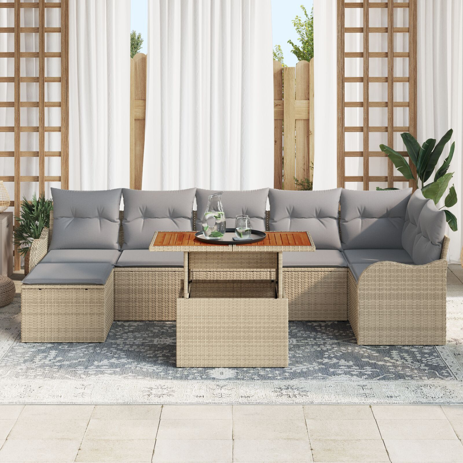 Descriere Set 8 Piese Grădină Perne Bej