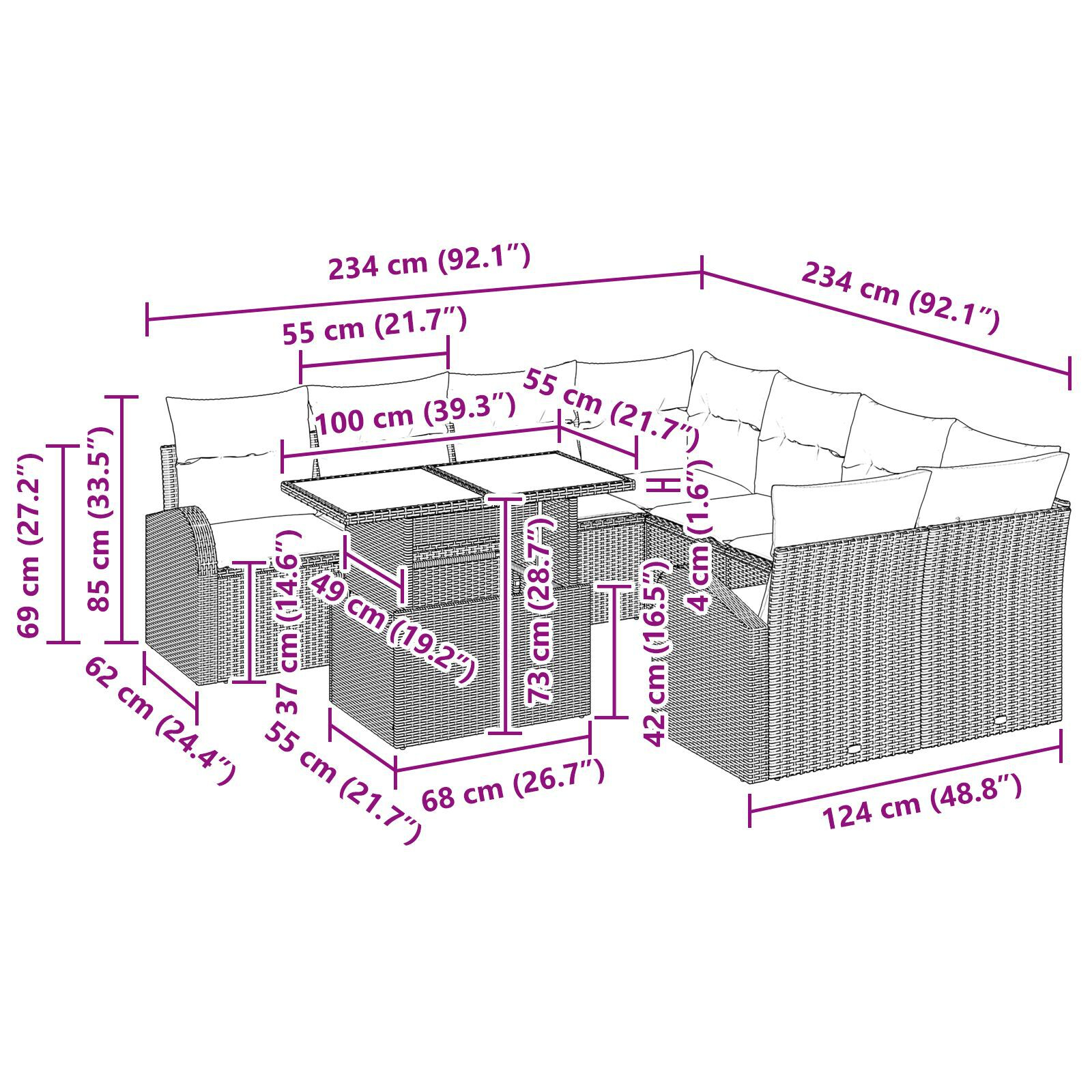 Set de 9 canapele pentru grădină cu perne gri din ratan poli GartenMobel Dekor