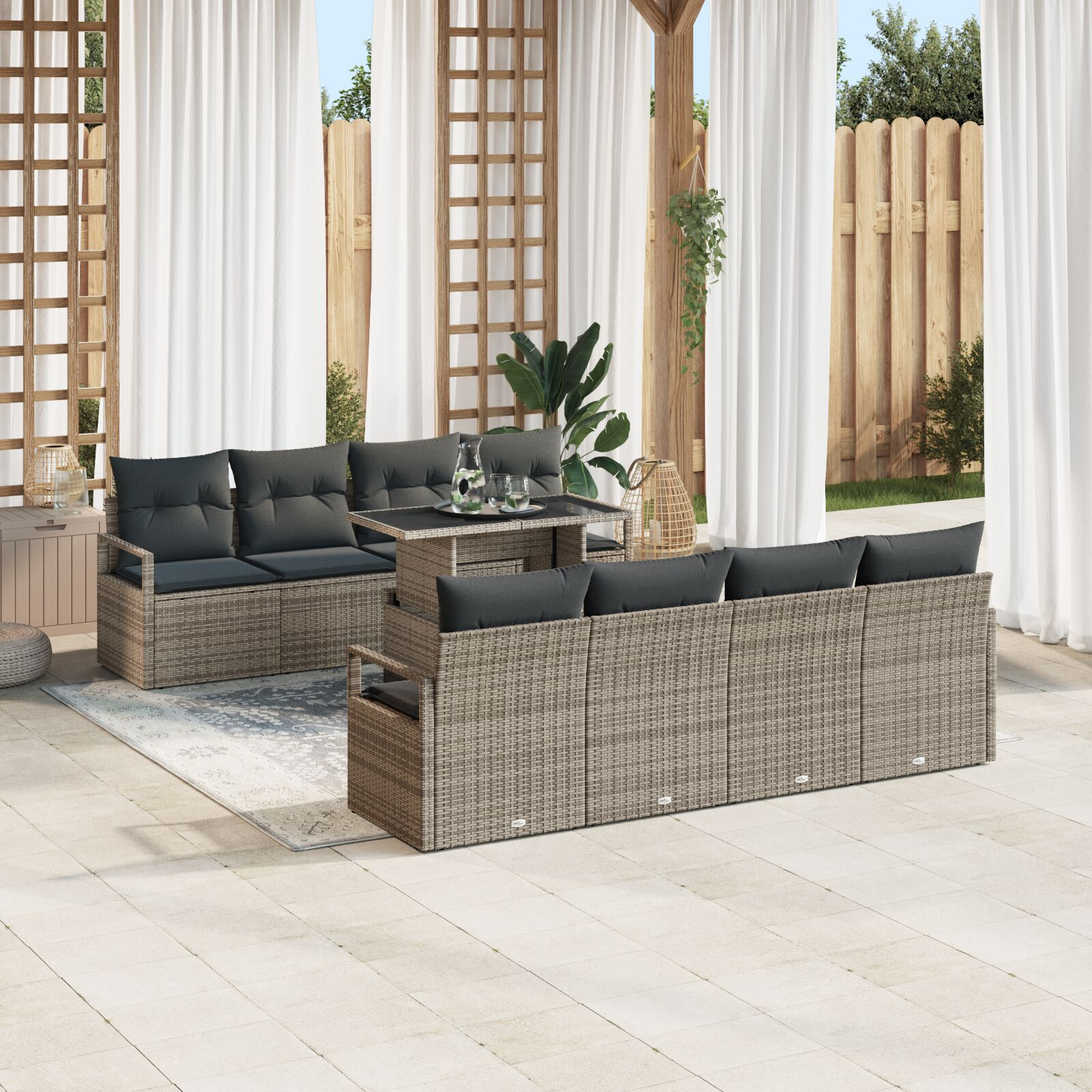 Set de 9 piese canapea grădină cu perne gri ratan poli, Set de 2 piese canapea grădină cu perne gri ratan poli GartenMobel Dekor