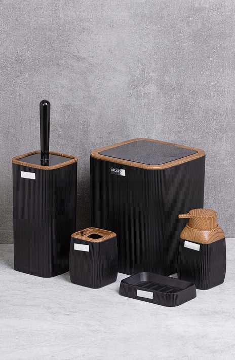 Set de accesorii patrate pentru baie din plastic, 5 piese, negru maro Household NewTrend