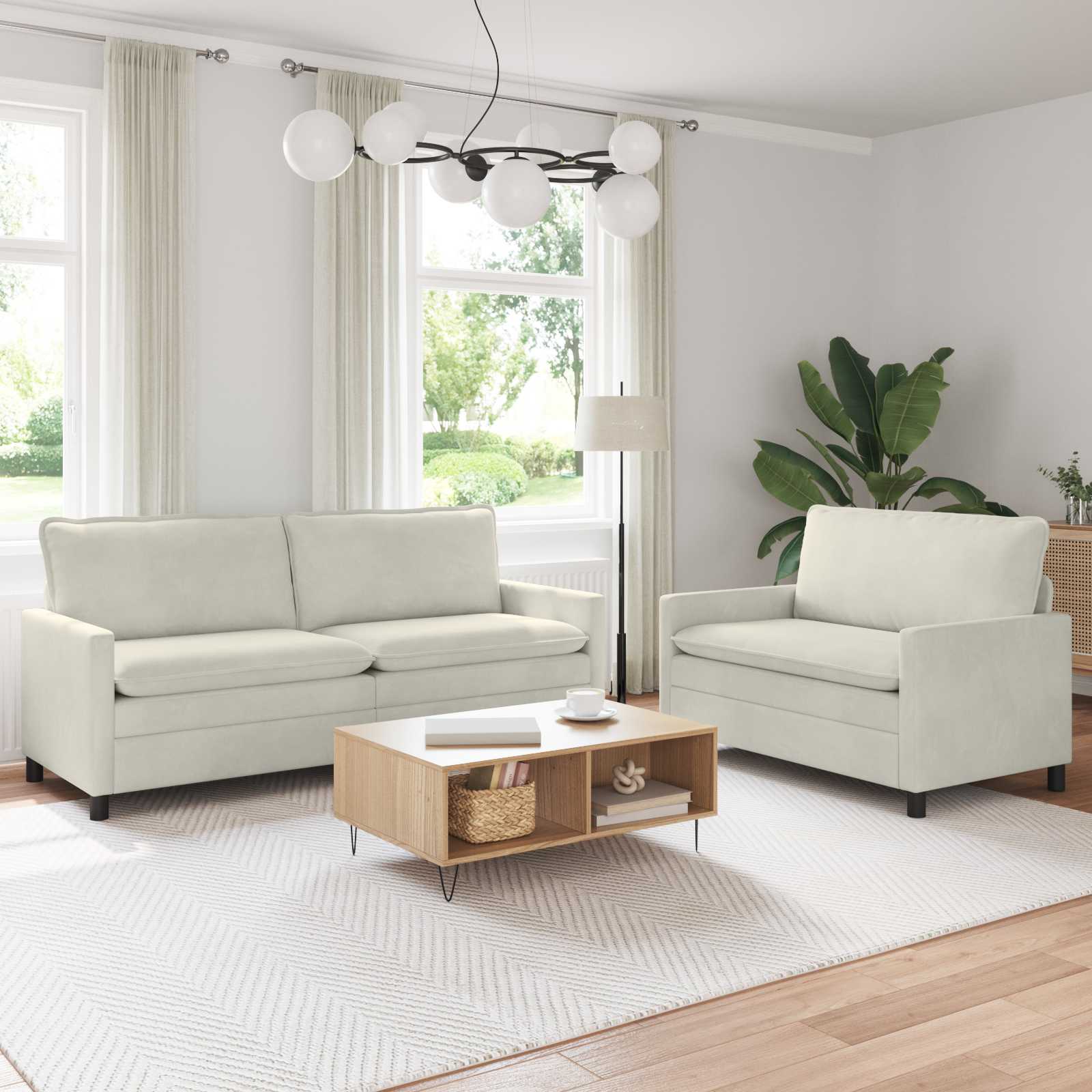 Setul ăsta de canapele moderne combină stilul contemporan cu confortul care funcționează bine în viața de zi cu zi. Catifeaua aduce un aer rafinat, iar designul simplu păstrează camera ordonată. Pernițele cu două straturi sunt perfecte pentru a te așeza comod fie când stai la vorbă, fie când citești. Se integrează ușor în apartamentele mici sau în spații mai mari.