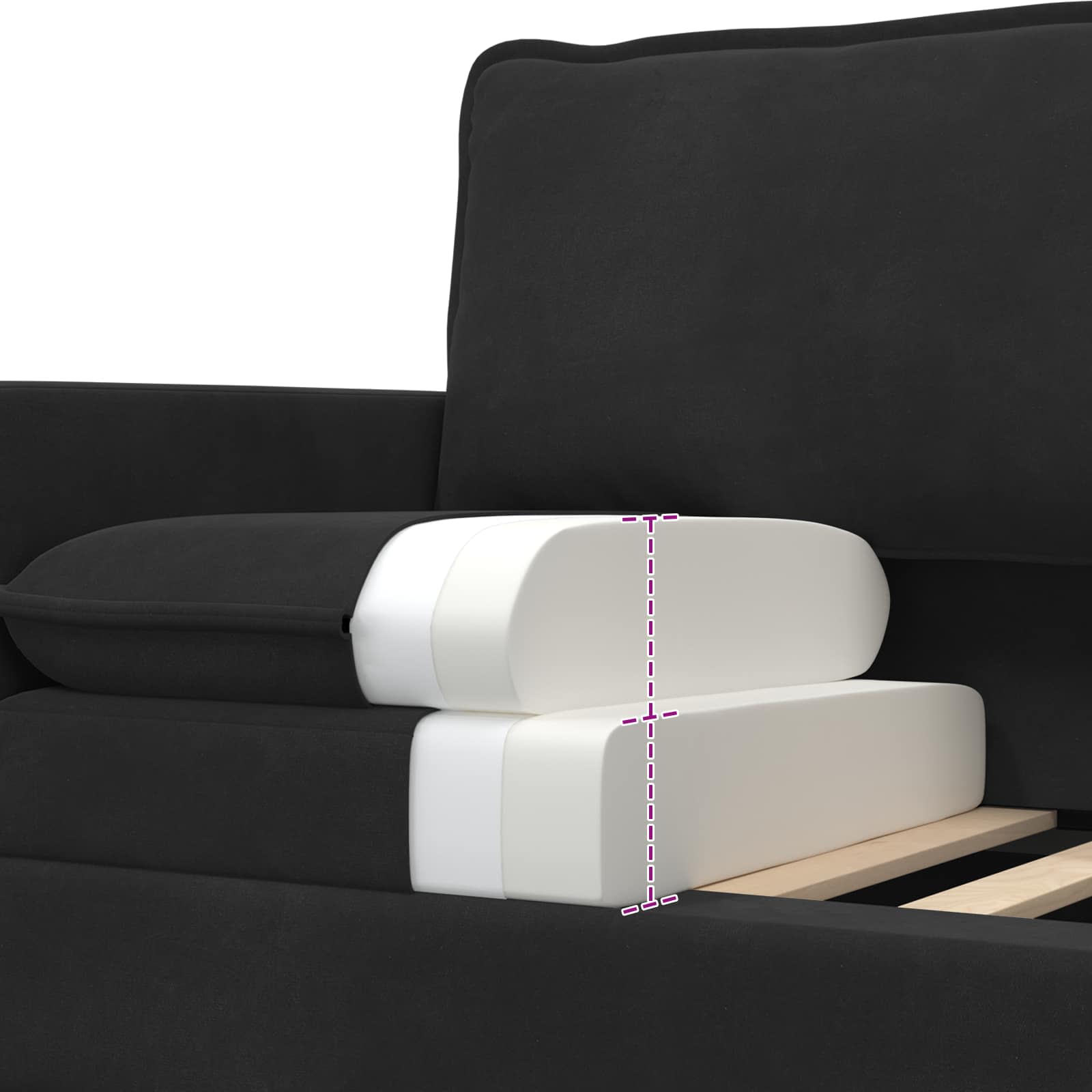 Setul ăsta de canapele moderne combină stilul contemporan cu confortul care funcționează bine în viața de zi cu zi. Catifeaua aduce un aer rafinat, iar designul simplu păstrează camera ordonată. Pernițele cu două straturi sunt perfecte pentru a te așeza comod fie când stai la vorbă, fie când citești. Se integrează ușor în apartamentele mici sau în spații mai mari.