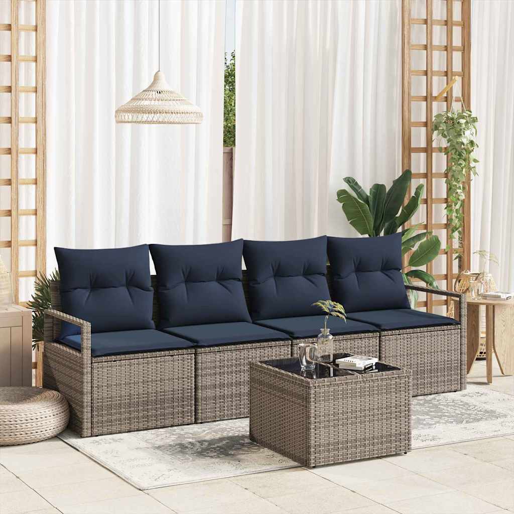 Set de canapea 5 pcs Gri și Albastru poliratan GartenMobel Dekor
