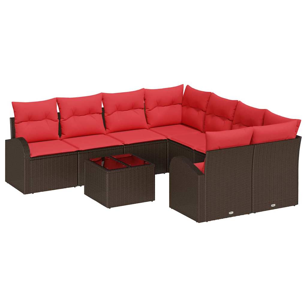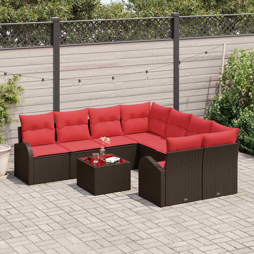 Set de canapea 9 pcs Maro și roșu Poliester GartenMobel Dekor
