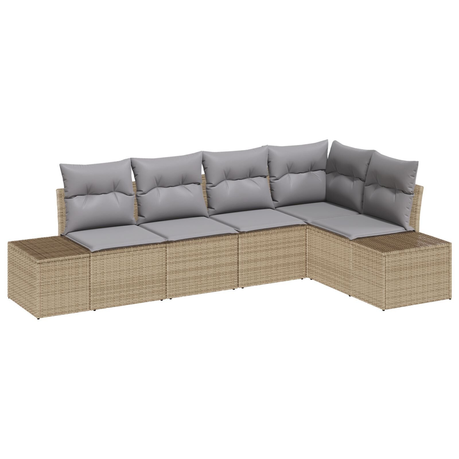 Set de Canapea compus din 5 piese cu perne Bej din ratan poli GartenMobel Dekor