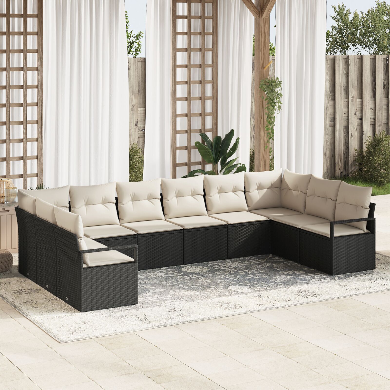 Set de canapea cu 10 piese cu perne Negru Poliratan, Canapea de grădină cu două locuri cu spațiu de stocare și perne Negru Poliratan GartenMobel Dekor
