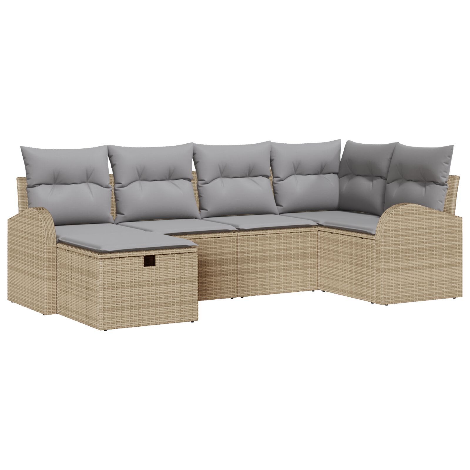 Set de Canapea cu 6 Piese și Perne Bej din Ratan Poli, Canapea de Grădină cu 2 Locuri cu Depozitare și Perne Bej din Ratan Poli GartenMobel Dekor