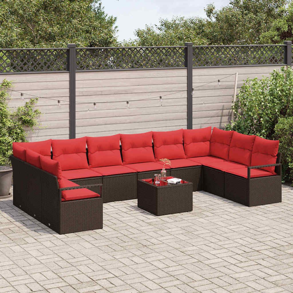 Set de canapea cu pernă 11 pcs Maro poliratan GartenMobel Dekor