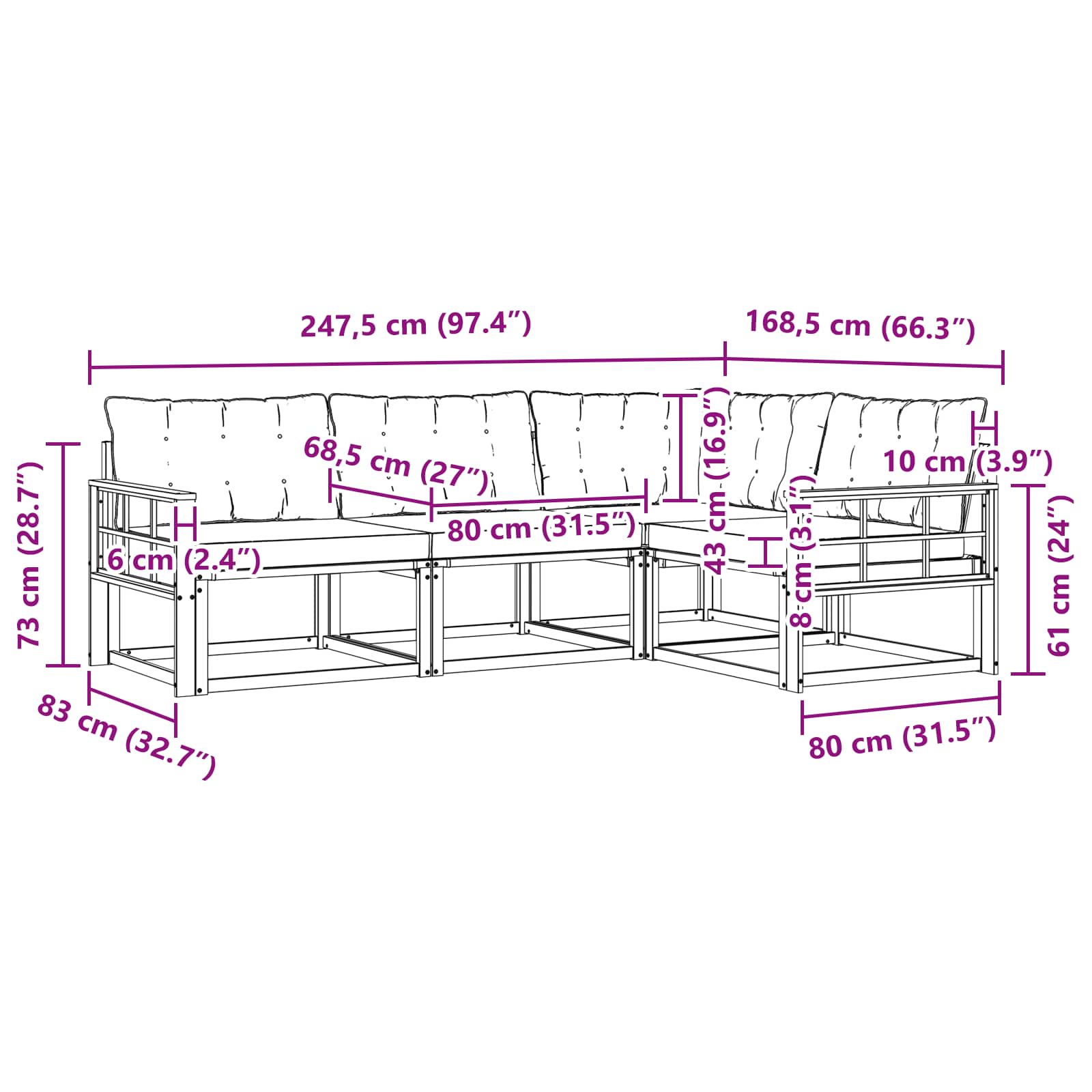 - 5 x Pernă de spate: 80 x 43 x 10 cm (LxlxH)