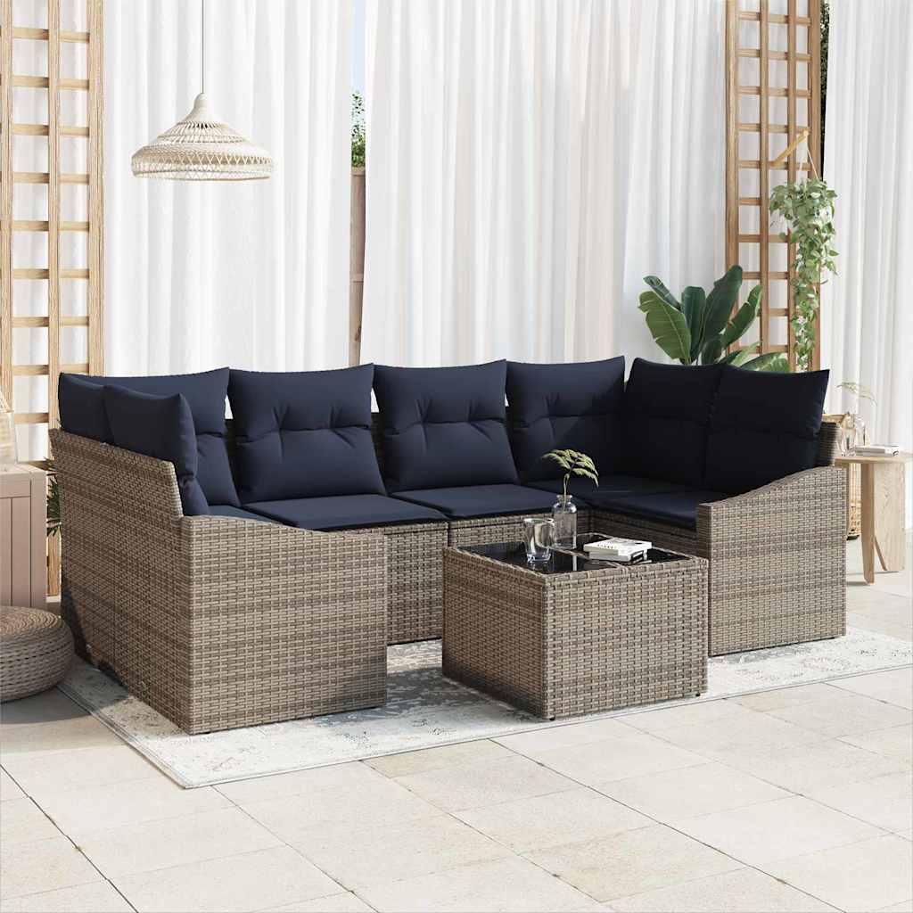 Set de canapea cu pernă 7 pcs Gri și bleumarin poliratan GartenMobel Dekor
