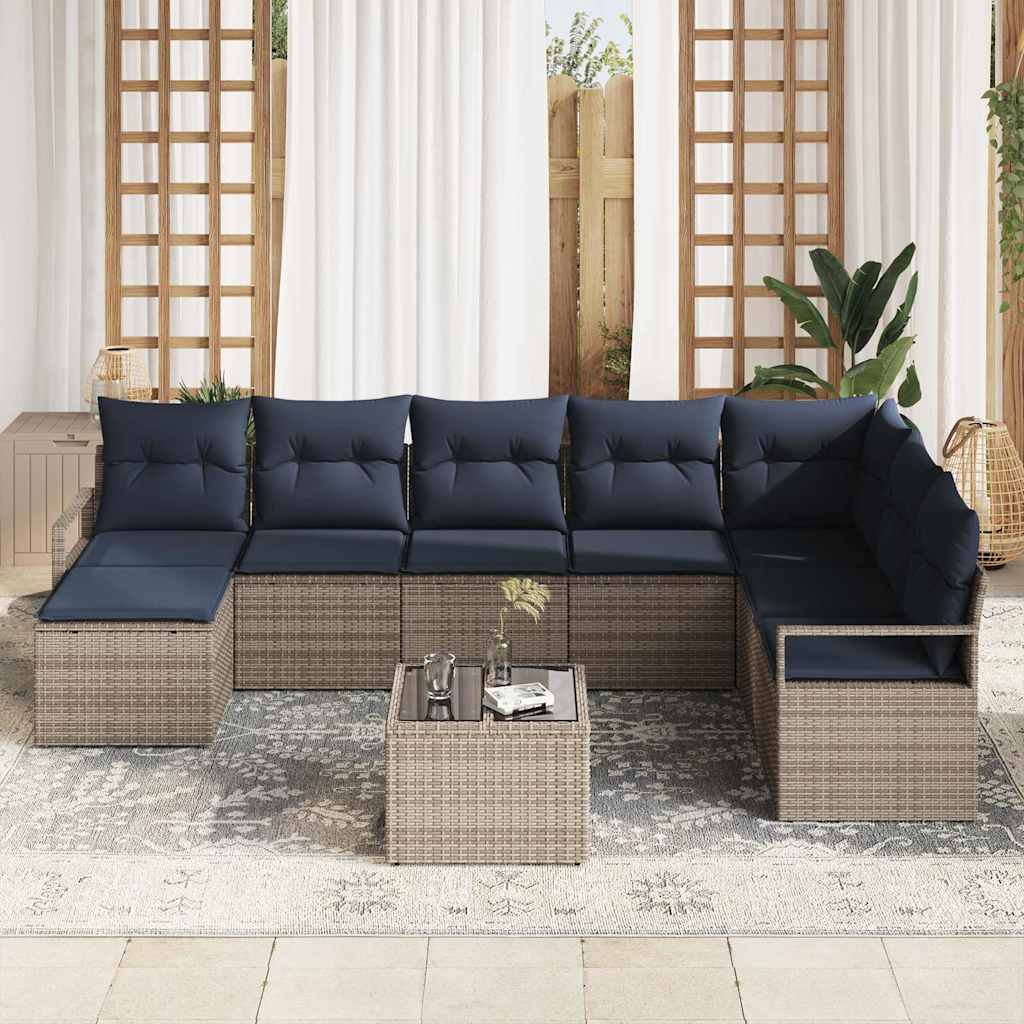 Set de canapea cu pernă 9 pcs Gri poliratan GartenMobel Dekor