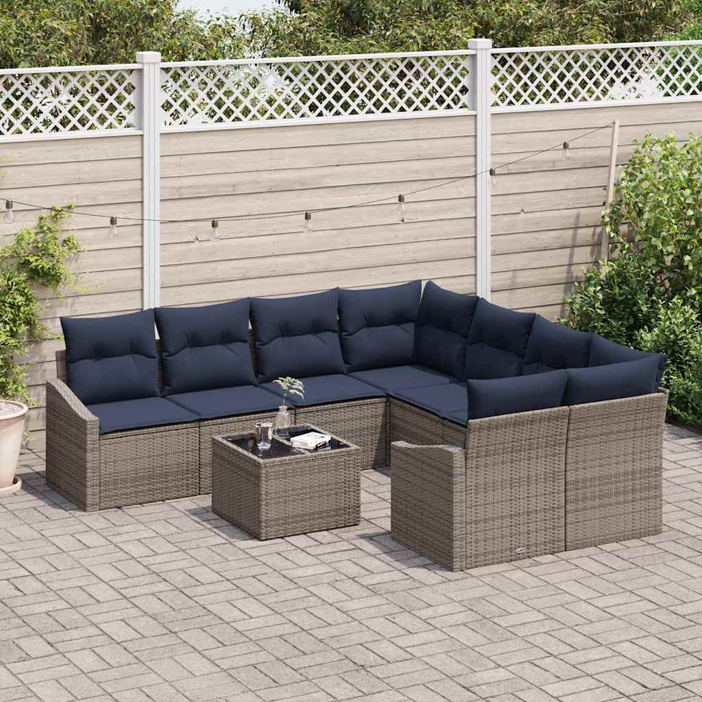 Set de canapea cu pernă 9 pcs Gri și bleumarin poliratan GartenMobel Dekor