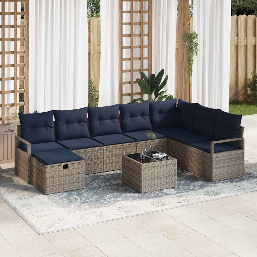 Set de canapea cu pernă cu depozitare 9 pcs Gri poliratan GartenMobel Dekor