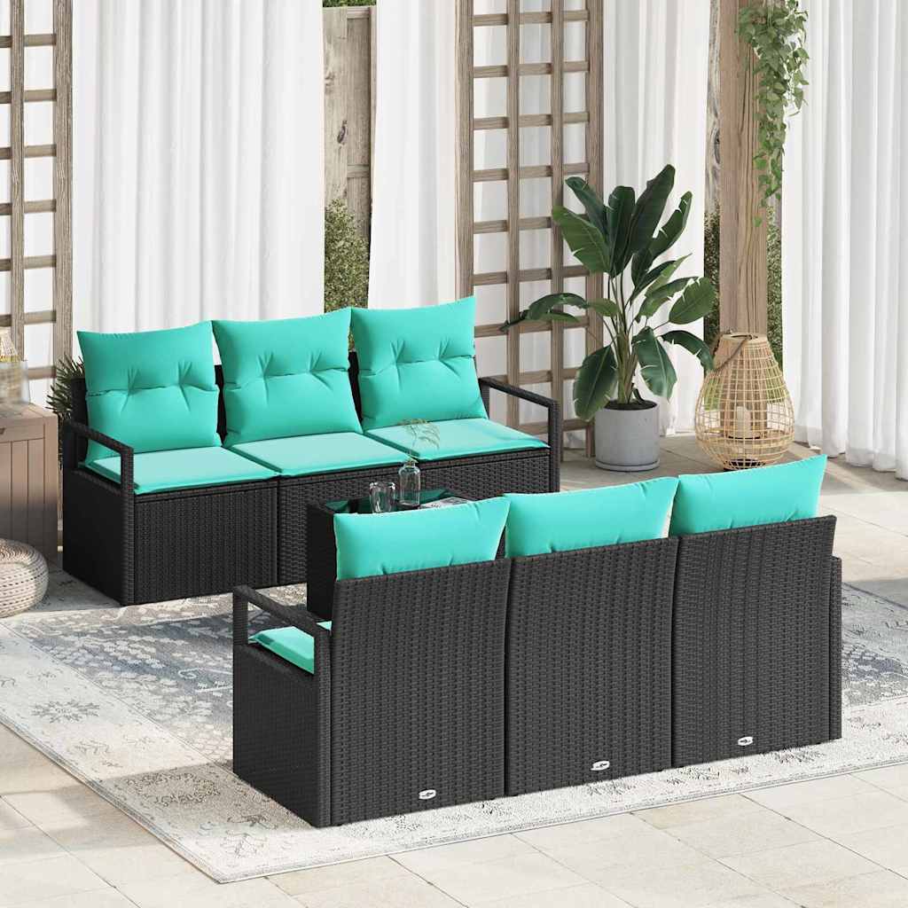 Set de canapea cu pernă Manual 7 pcs Negru și Turcoaz poliratan GartenMobel Dekor